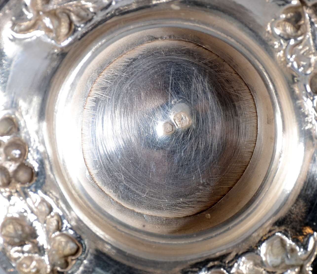 Fruteira de prata, contraste 800 mls, fundo cinzelado, borda com flores e concheados em relevo. Peso da prata: 270 g....