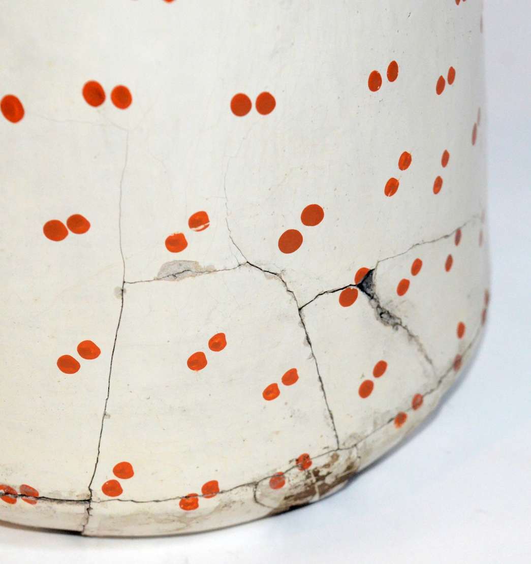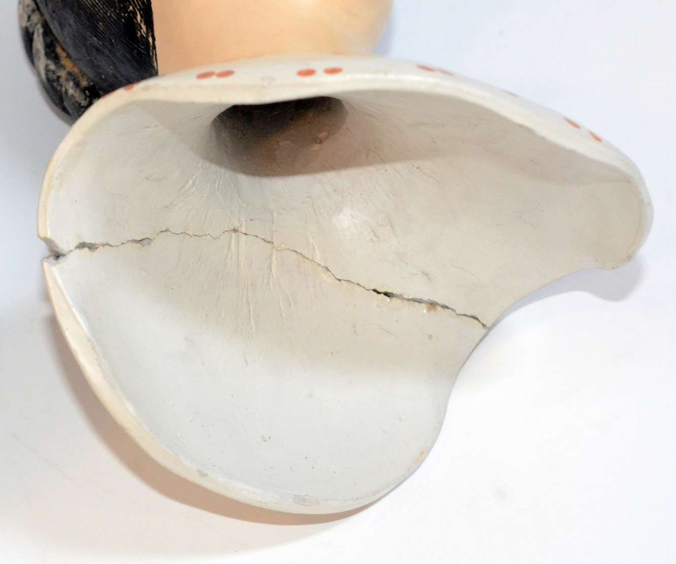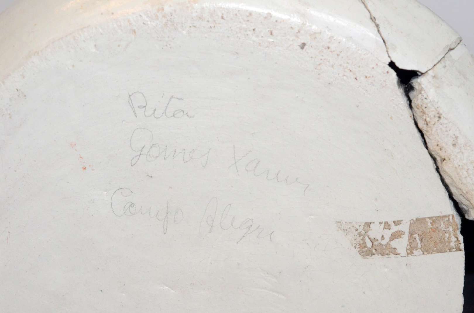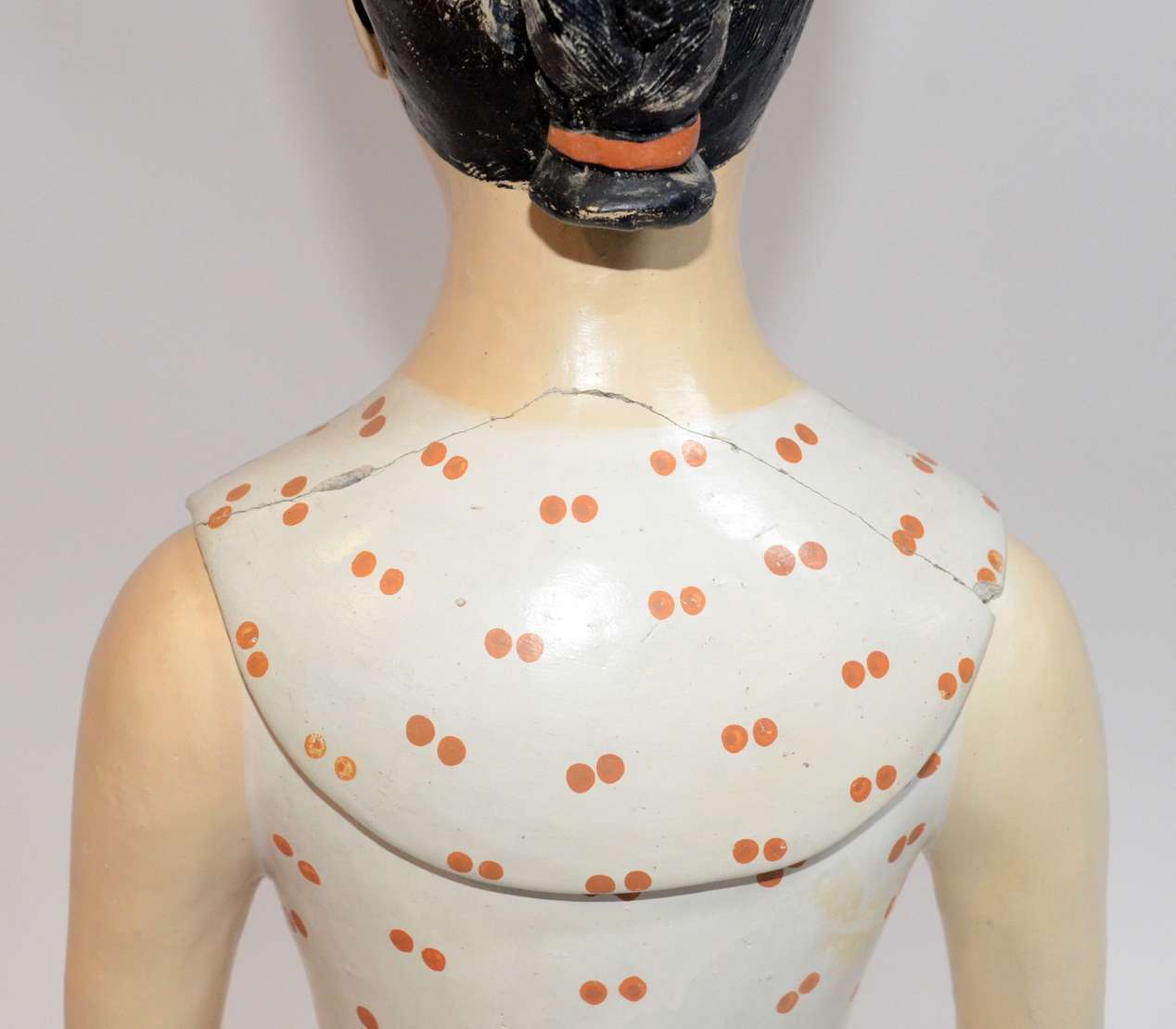 Crucifixo de madeira com figura de Cristo de gesso policromado. Desgastes.