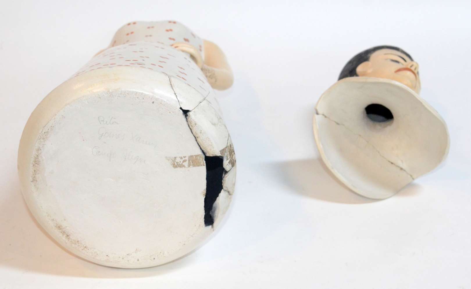 Par de esculturas de cerâmica branca representando guerreiros.