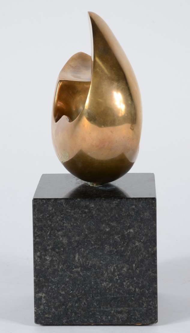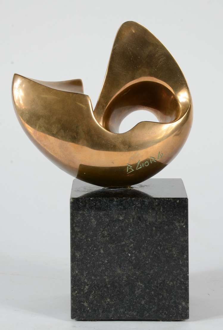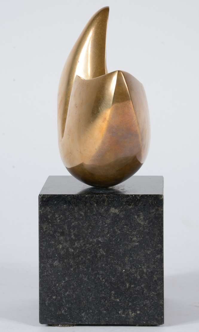 Duas peças, sendo: escultura de bronze sem assinatura e um cinzeiro Pietrina Checacci "mãos" com pedra.