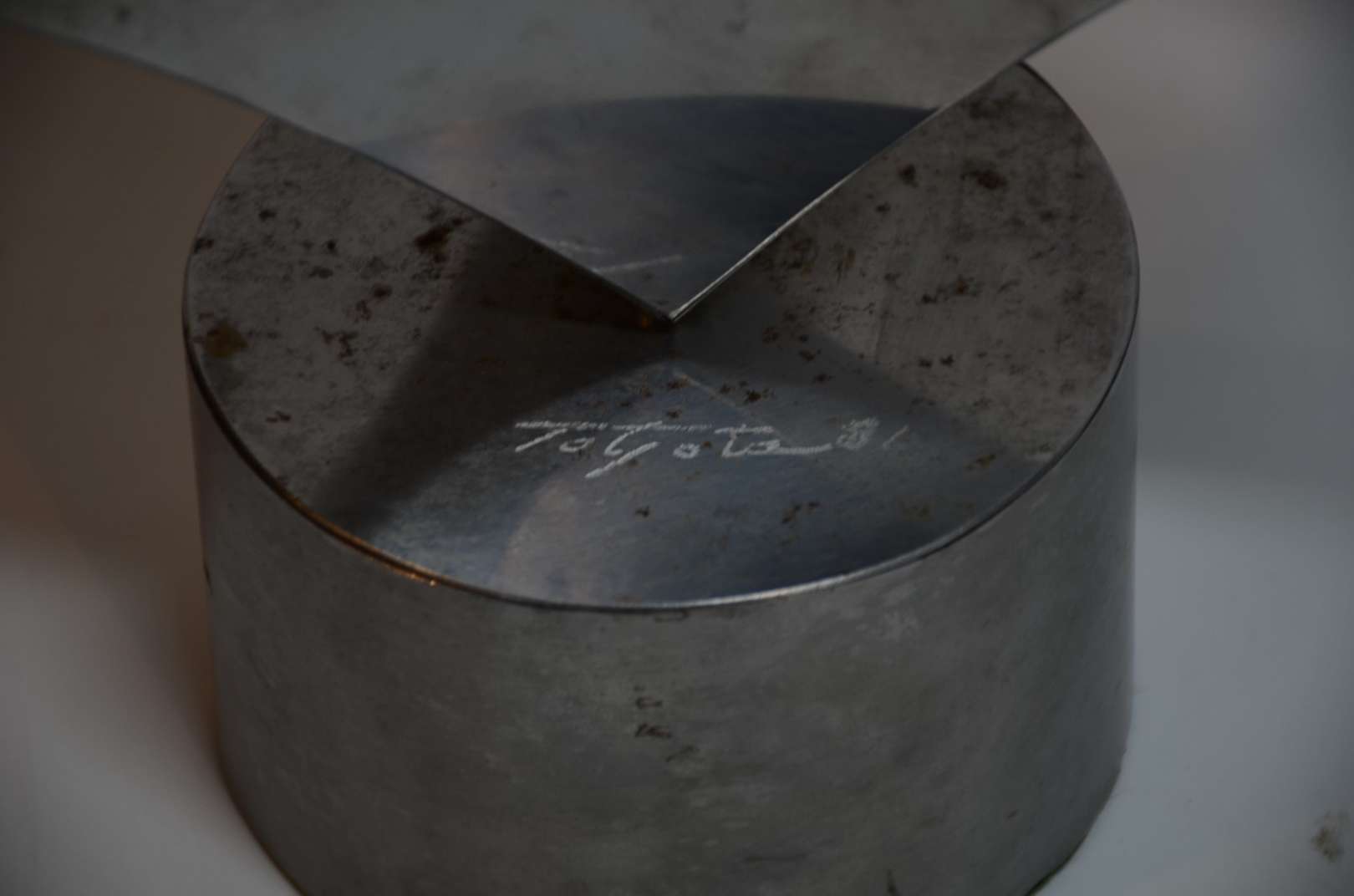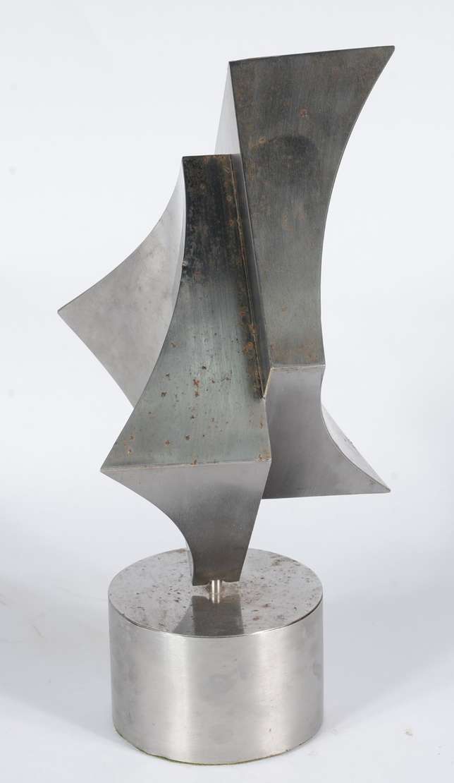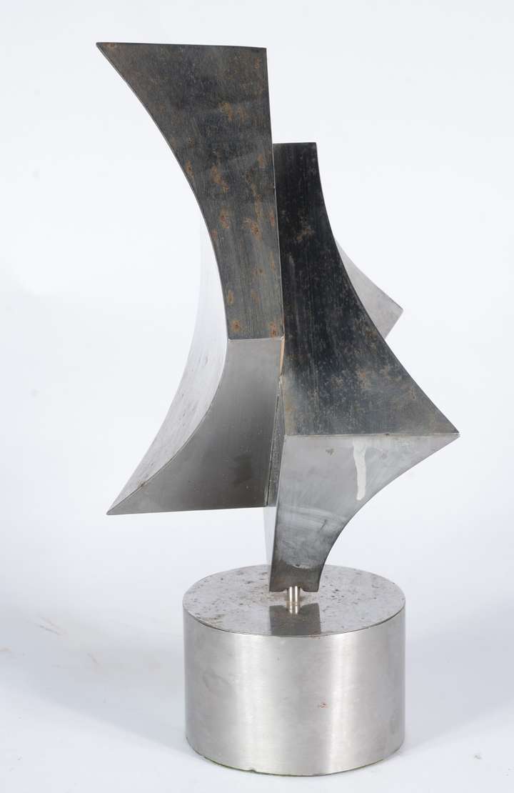 Escultura de metal, assinada e datada 1981. Pequenas oxidações.
