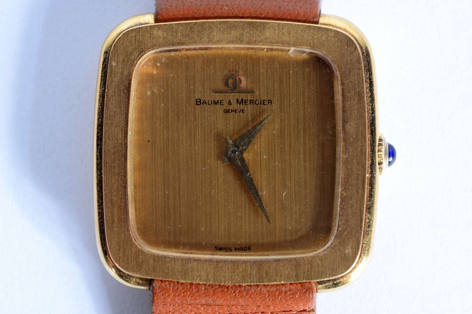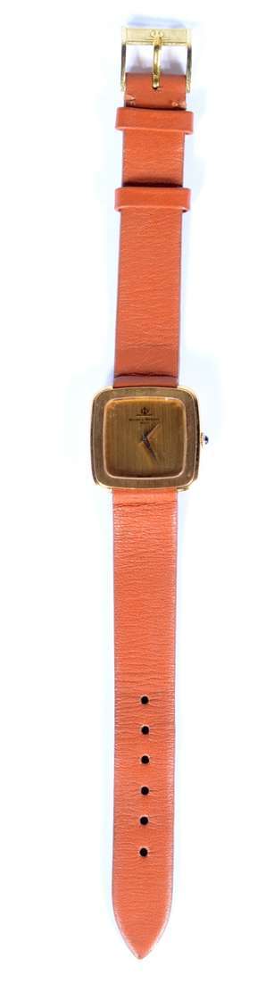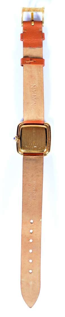 Relógio de pulso, caixa de ouro 18k., pulseira de couro.