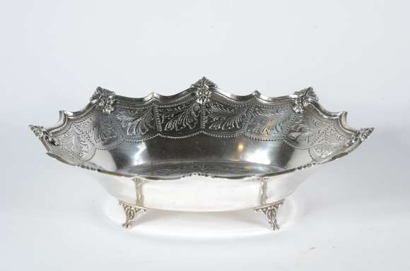 Pequena fruteira de prata inglesa, contrastada, galeria vazada. Peso da prata: 100 g. (Por motivos de segurança a peç...