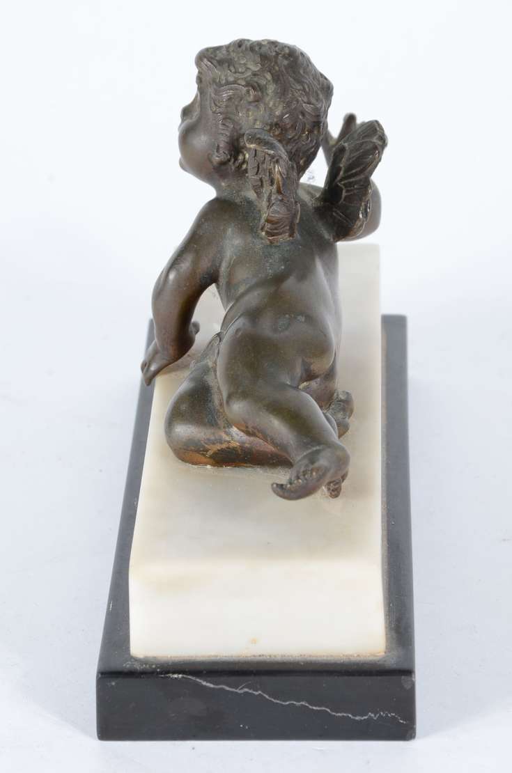 Escultura de bronze. Assinada. Base de granito preto.