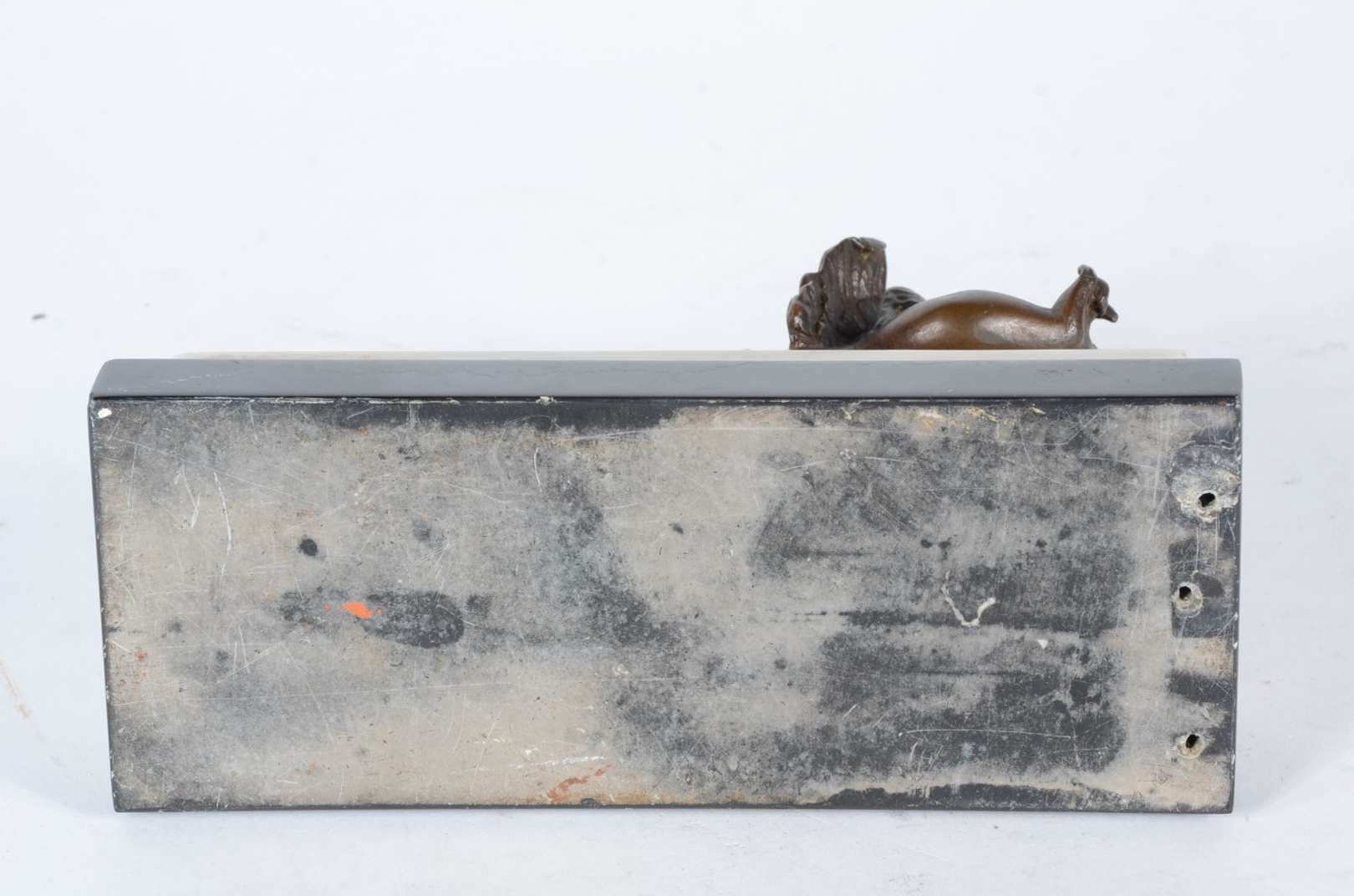 Duas peças, sendo: escultura de bronze sem assinatura e um cinzeiro Pietrina Checacci "mãos" com pedra.