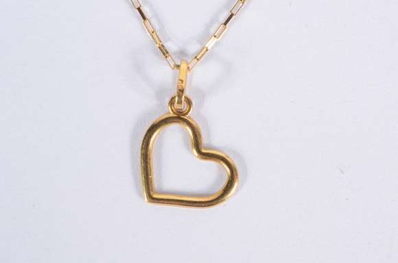 Colar de ouro 18 k., contraste 750 mls com pendente na forma de coração. (Por motivos de segurança a peça não se enco...