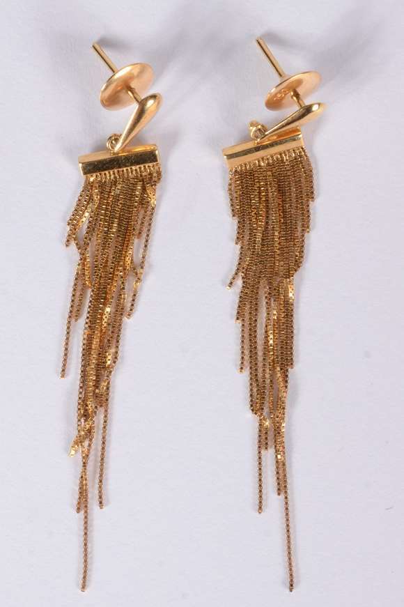 Par de brincos de ouro 18 k., contraste 750 mls com fios venezianos. (Por motivos de segurança a peça não se encontra...