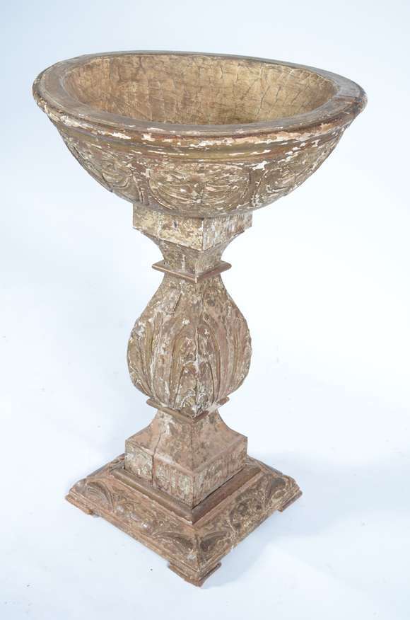 Pia batismal barroca em madeira nobre patinada, Minas, Século XIX.