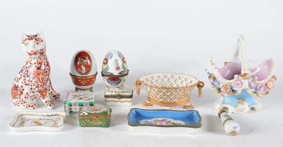 Porta anéis de porcelana oriental, tampas decoradas com gueixas em policromia e cenas eróticas no fundo.