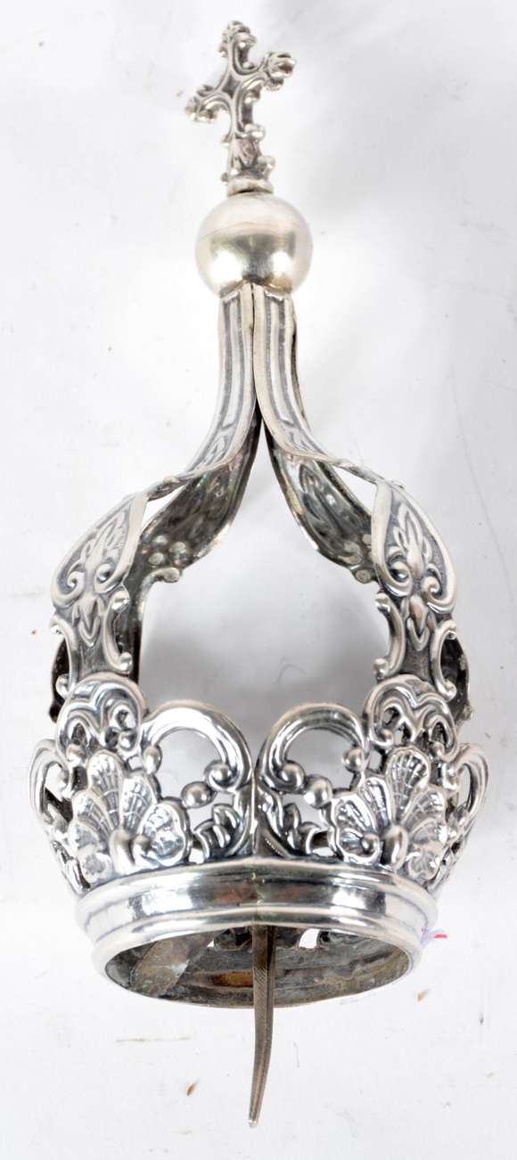Coroa de prata com cruz no topo. (Por motivos de segurança a peça não se encontra na loja).