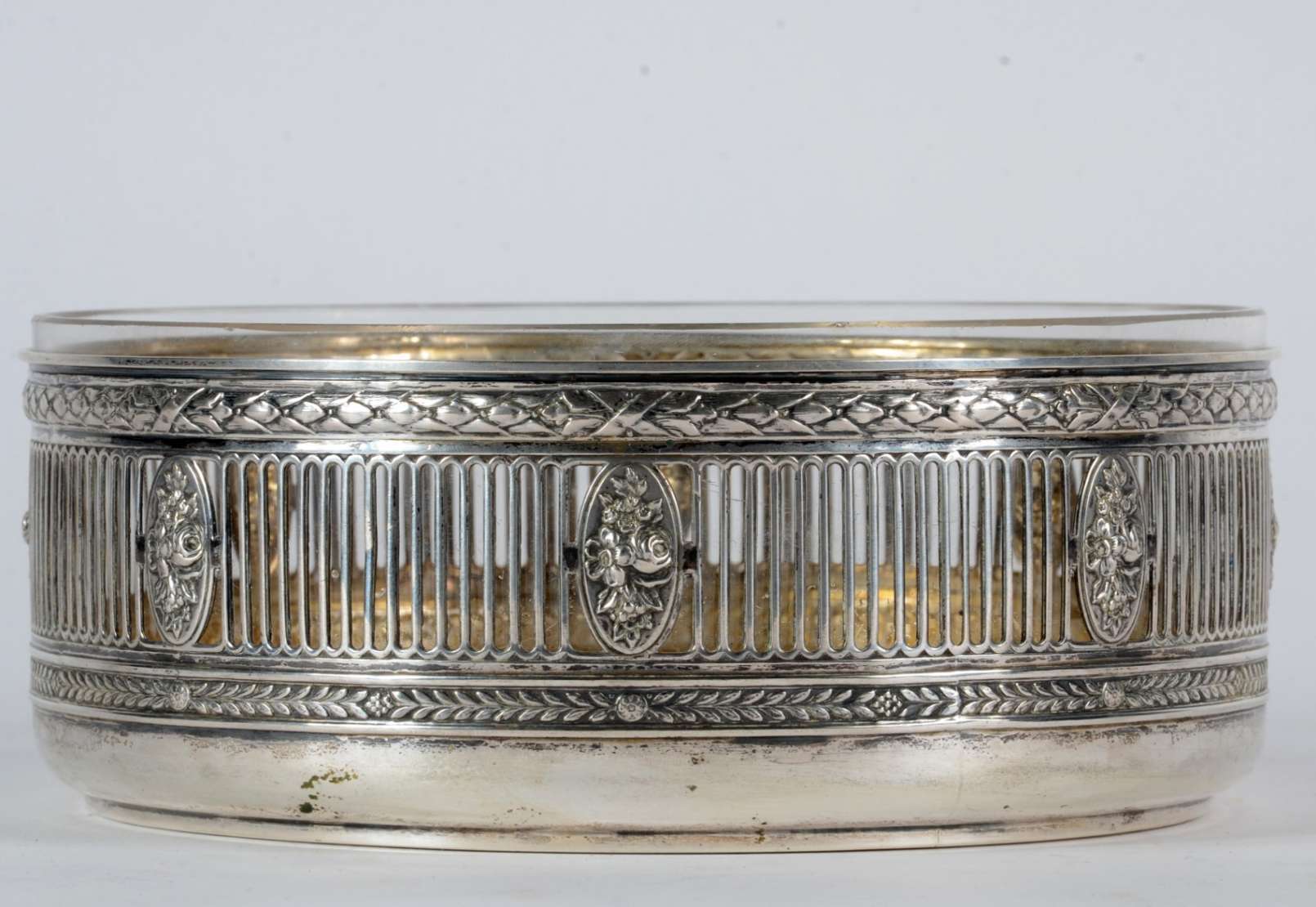 Pequena fruteira de prata inglesa, contrastada, galeria vazada. Peso da prata: 100 g. (Por motivos de segurança a peç...