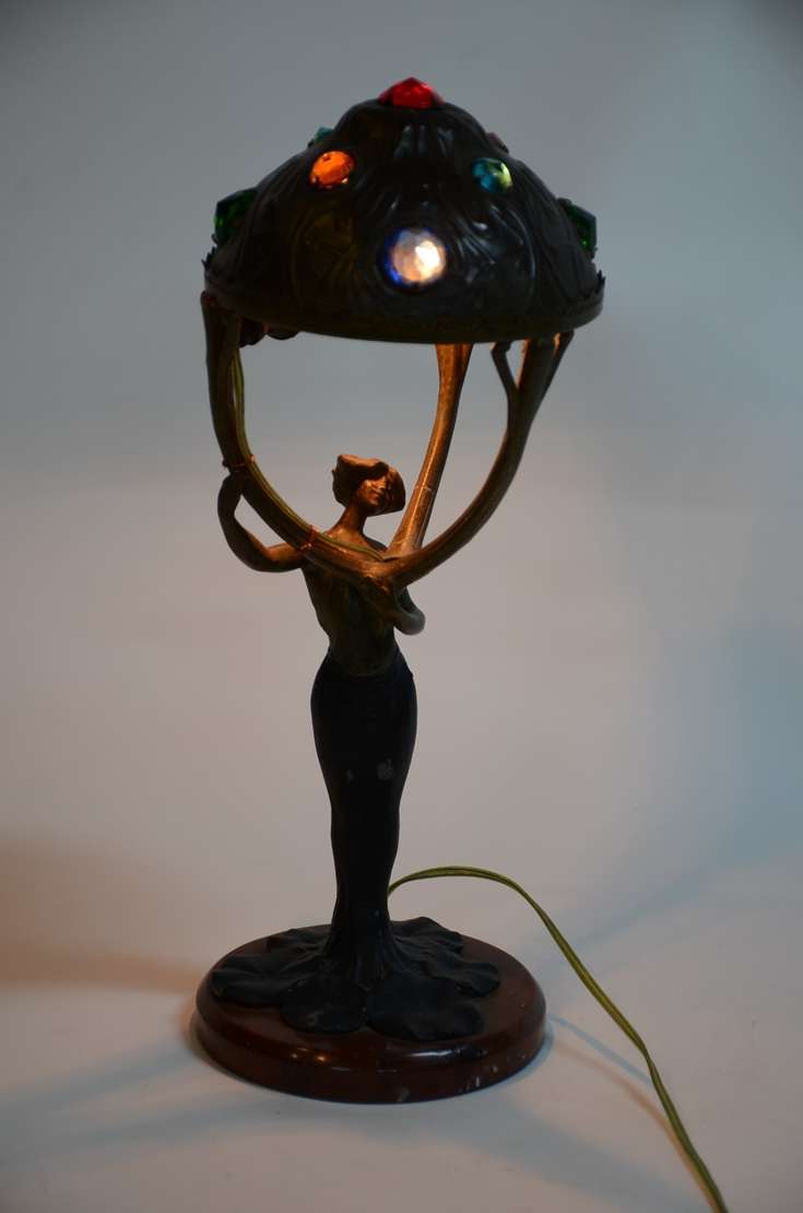 Escultura de porcelana espanhola representando moças tocando.