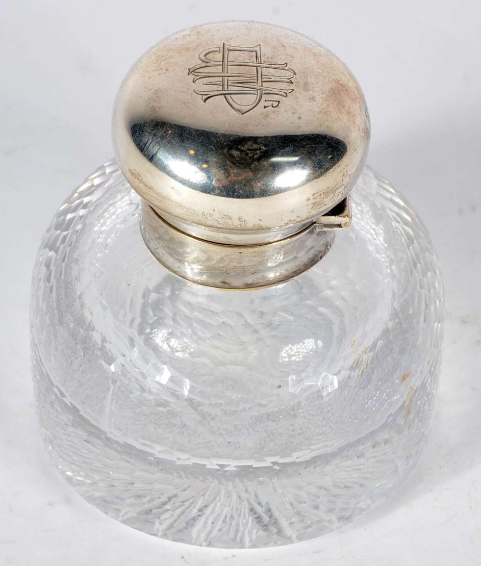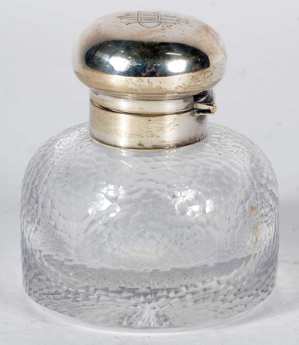 Duas peças de cristal lapidado, sendo: fruteira com borda de metal prateado e bomboniere com borda de metal dourado.