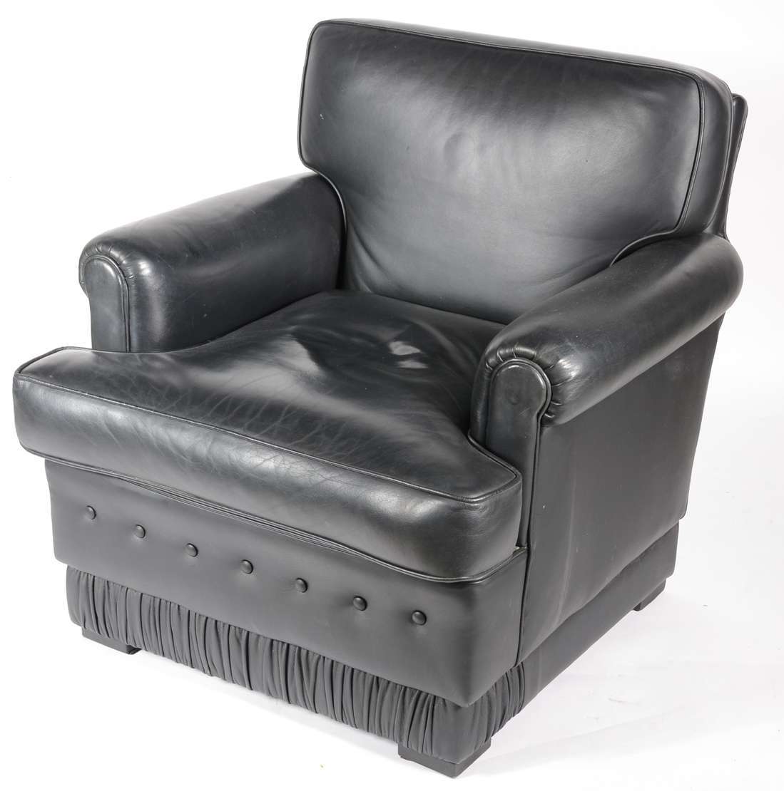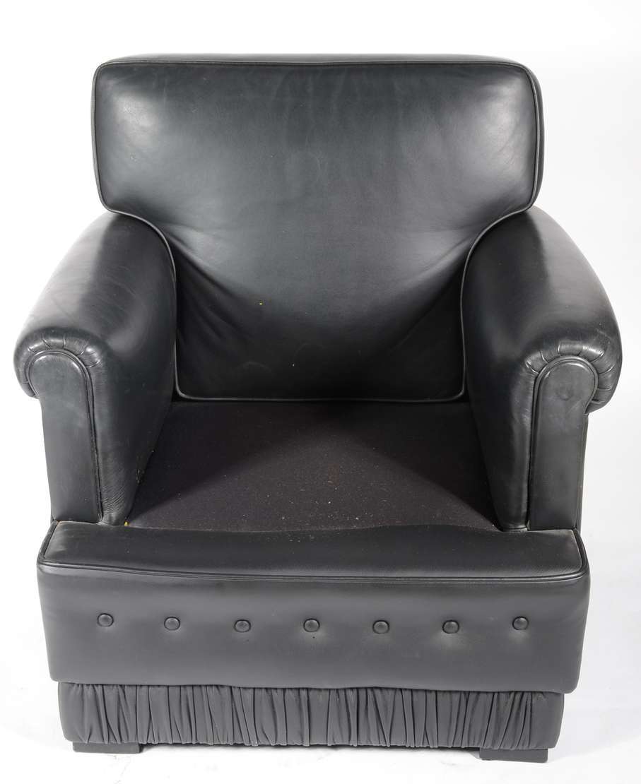 Par de poltronas feitio "esfera" de fibra de vidro na cor preta, giratórias, almofadas soltas forradas em couro bege....