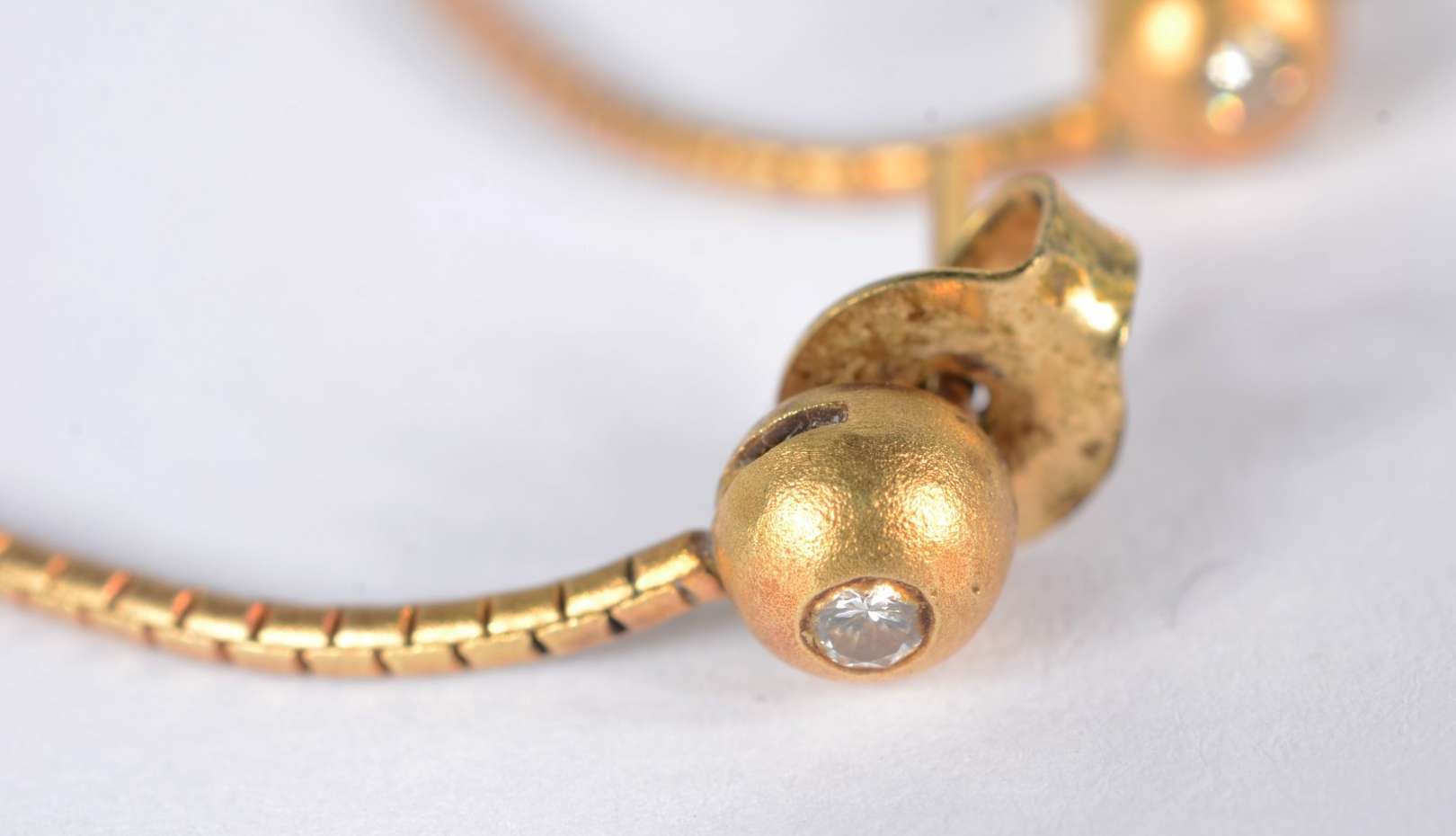 Par de argolinhas de ouro 18 k., com brilhantes. (Por motivos de segurança a peça não se encontra na loja).