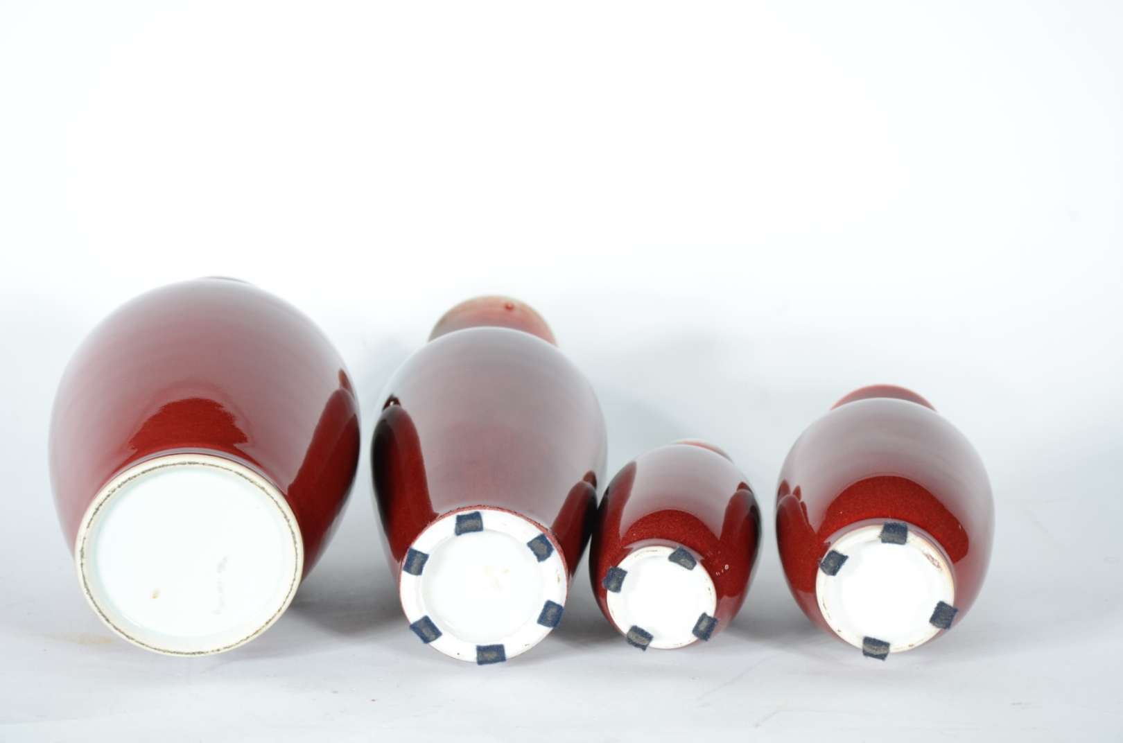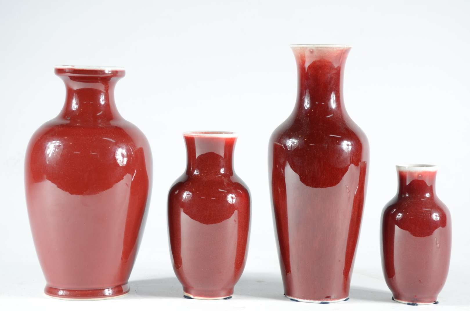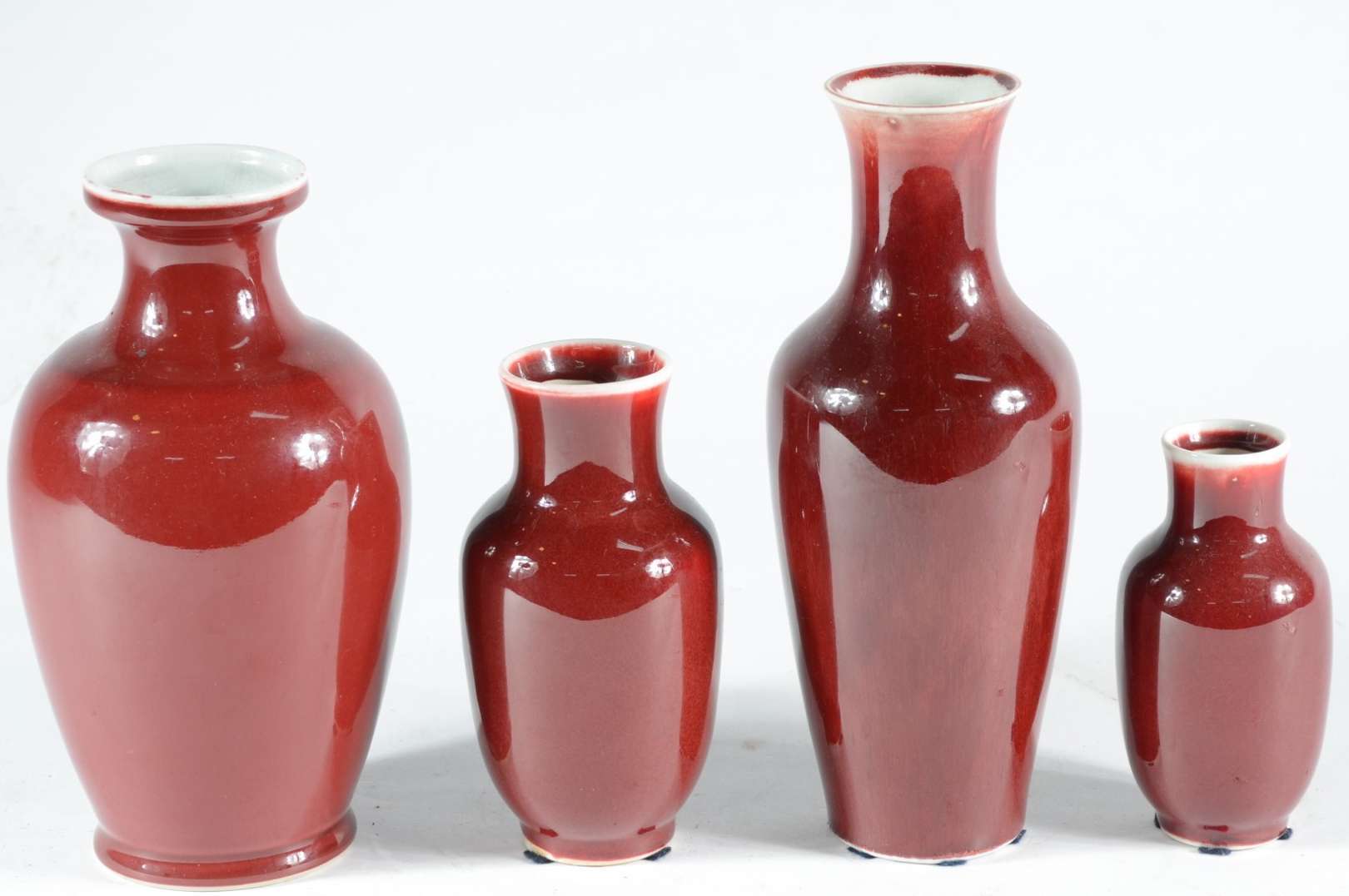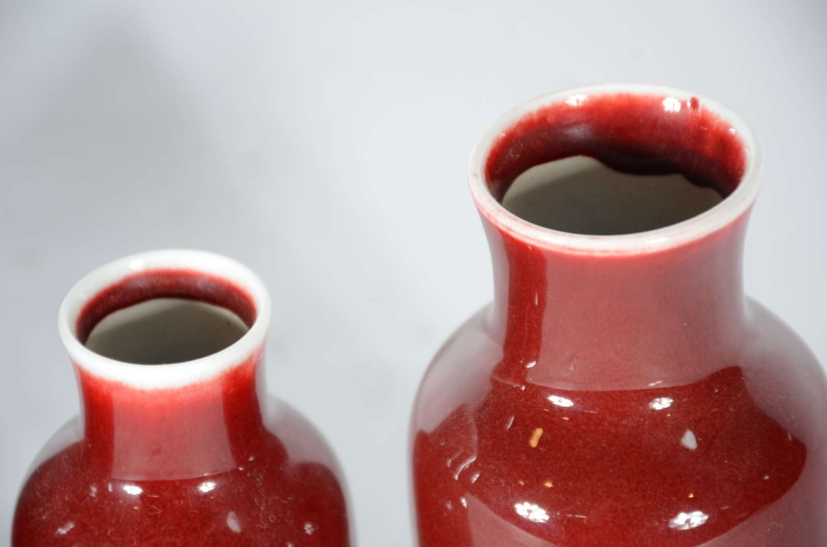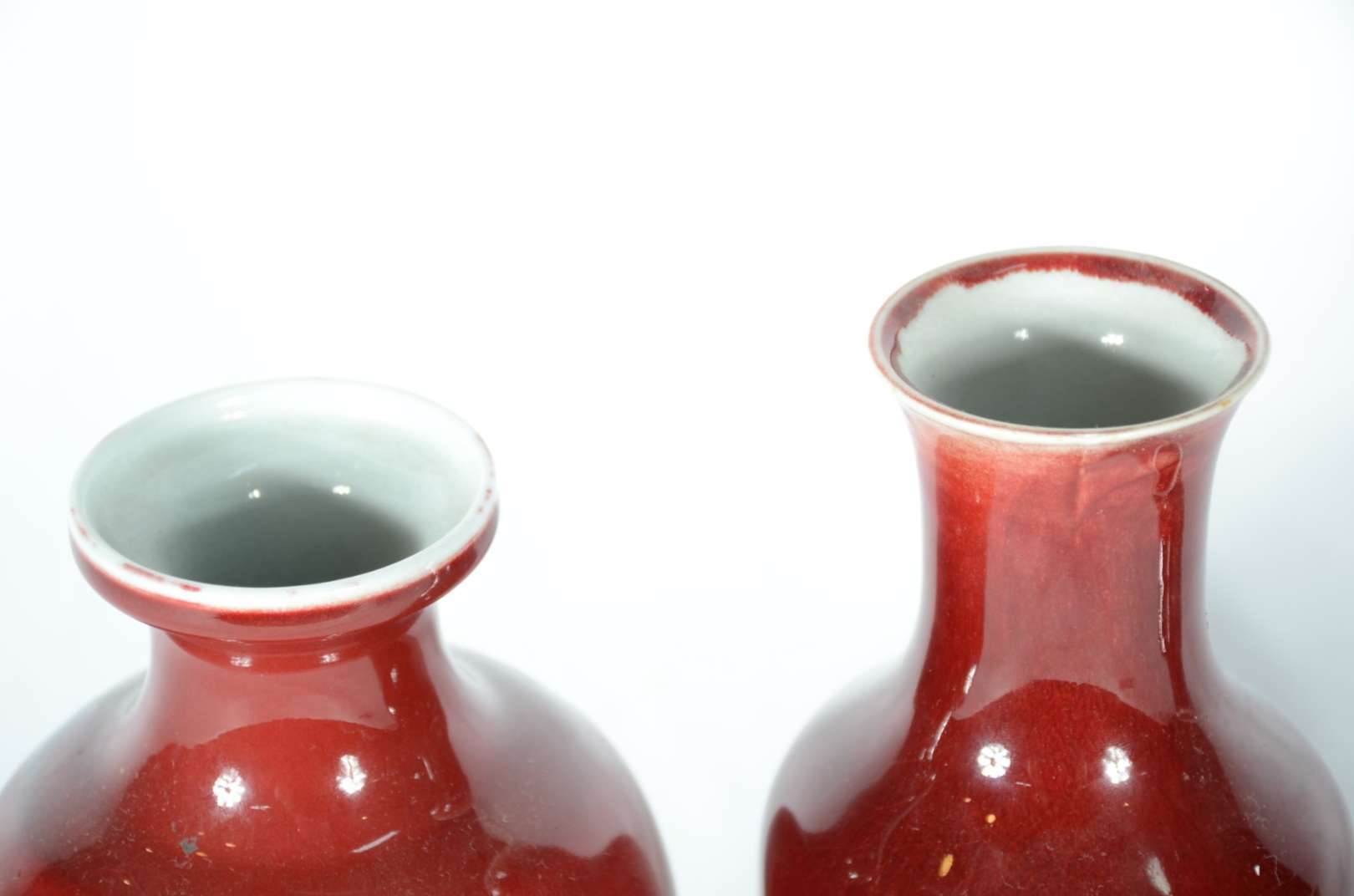 Par de vasos de porcelana chinesa "sangue de boi", bases de madeira.