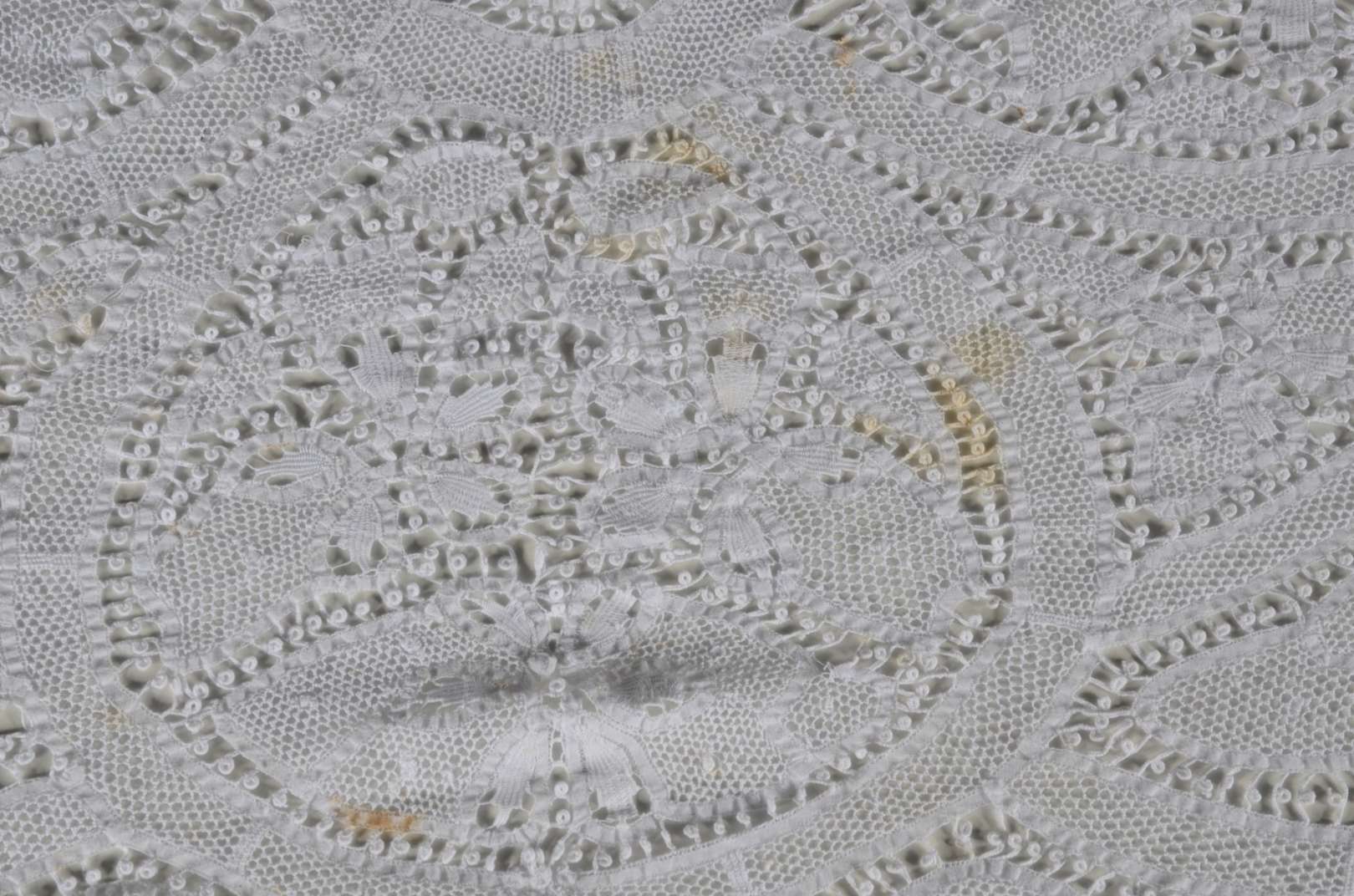 Conjunto com fruteira e par de enfeites de cerâmica branca com frutos em relevo. Uma delas com restauro.