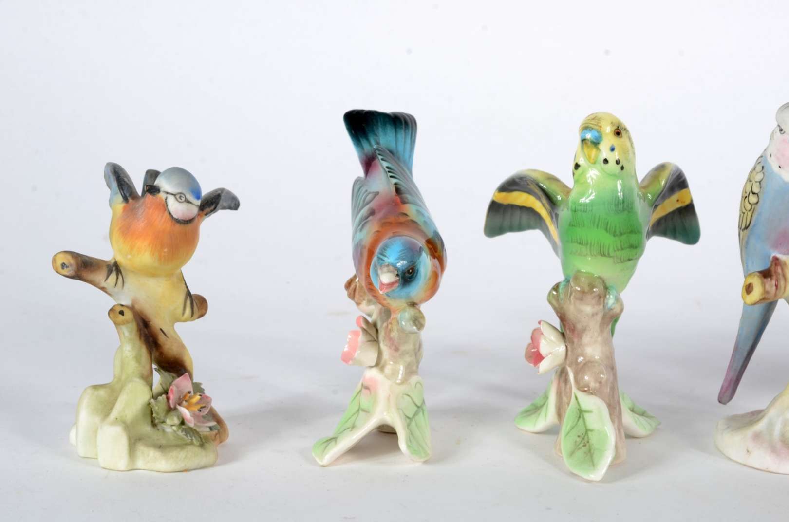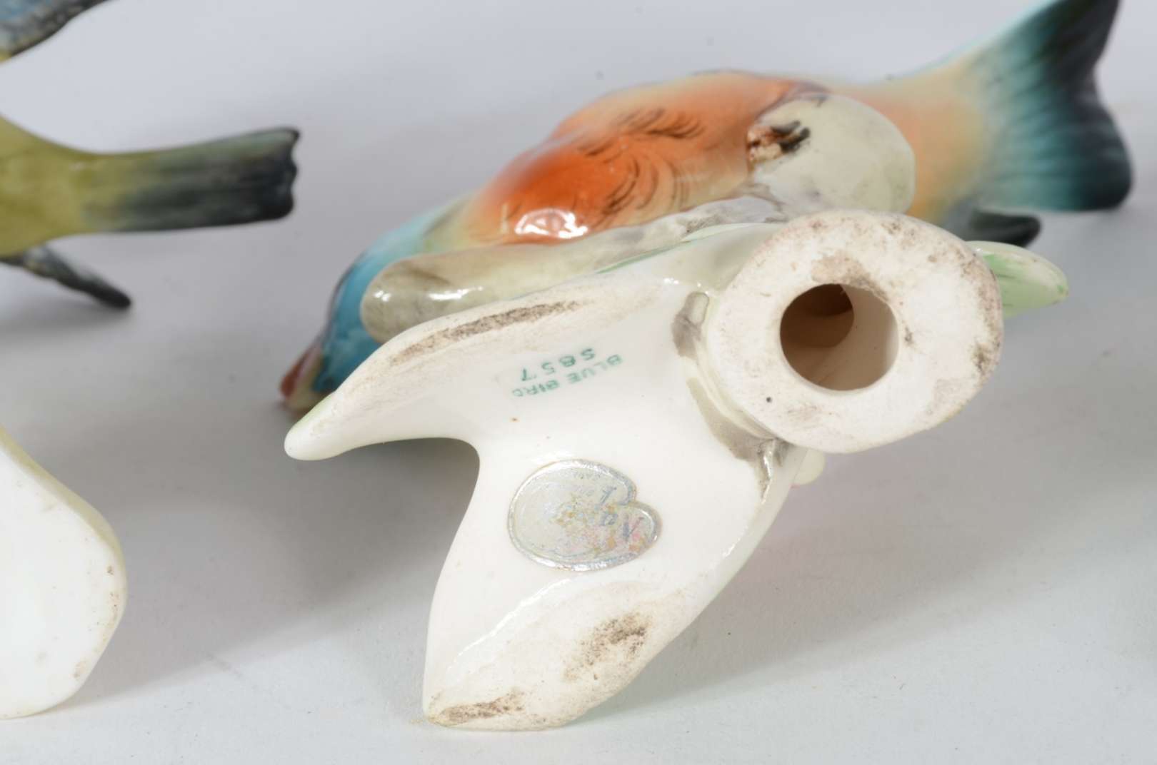 Quatro figuras típicas de porcelana oriental azul turquesa. Um deles com cesto restaurado.