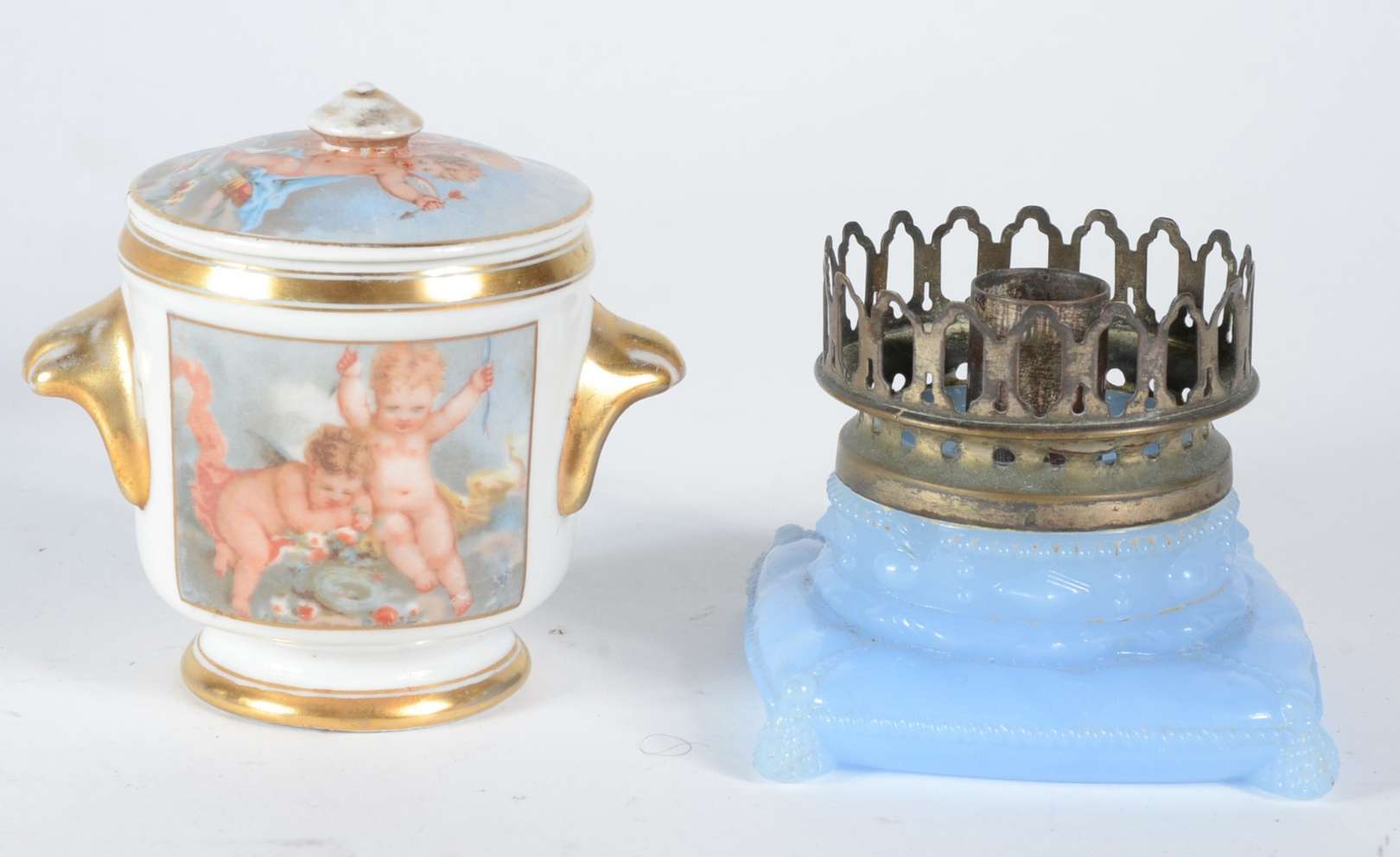 Porta anéis de porcelana oriental, tampas decoradas com gueixas em policromia e cenas eróticas no fundo.