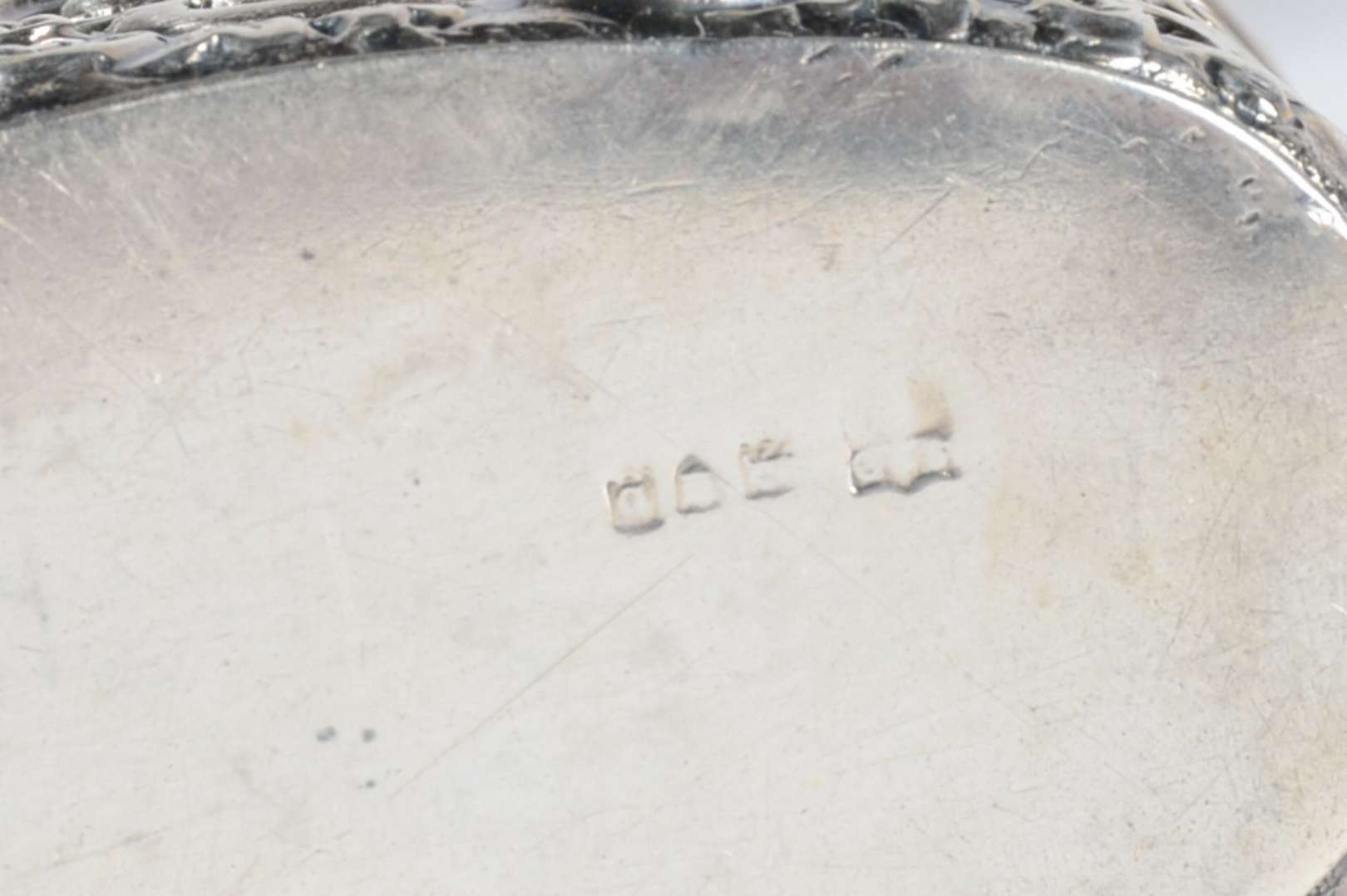 Três peças de prata de lei, sendo: tesoura decorada com uvas e folhas de parreiras; e, duas colheres, contraste 800 m...