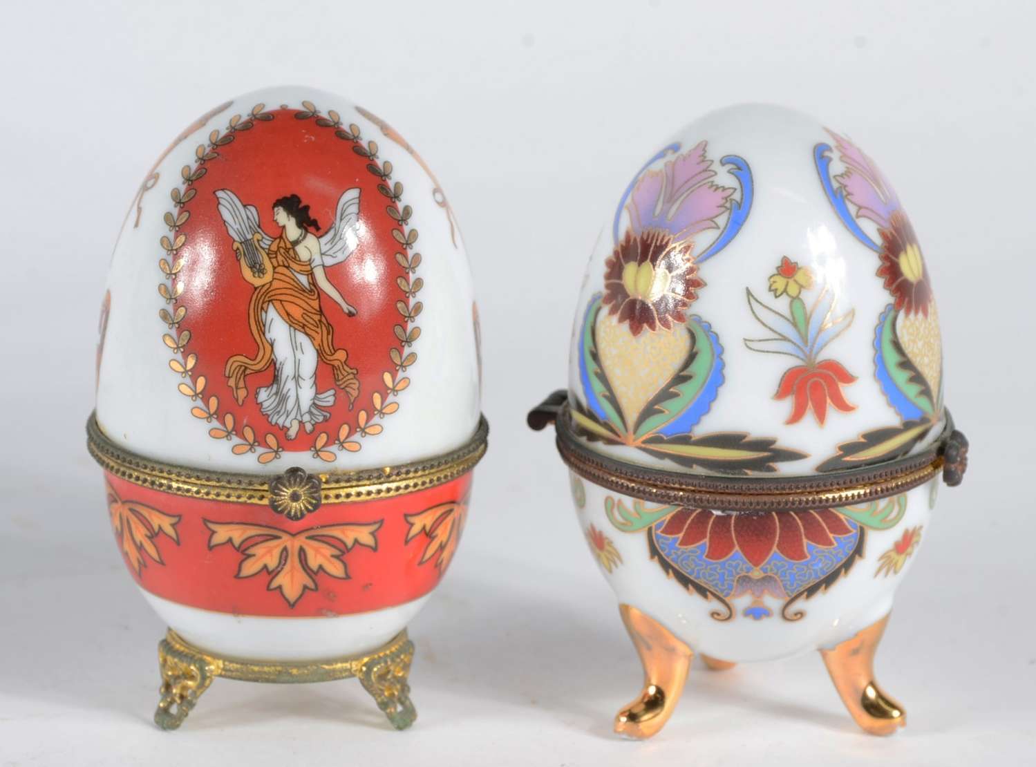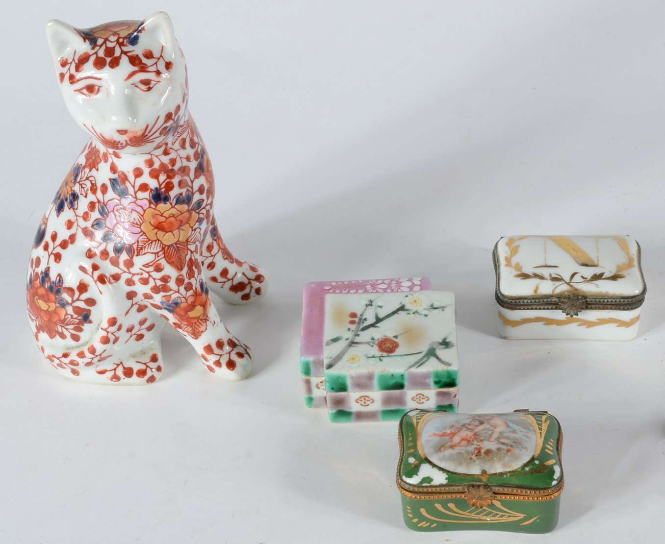 Porta anéis de porcelana oriental, tampas decoradas com gueixas em policromia e cenas eróticas no fundo.