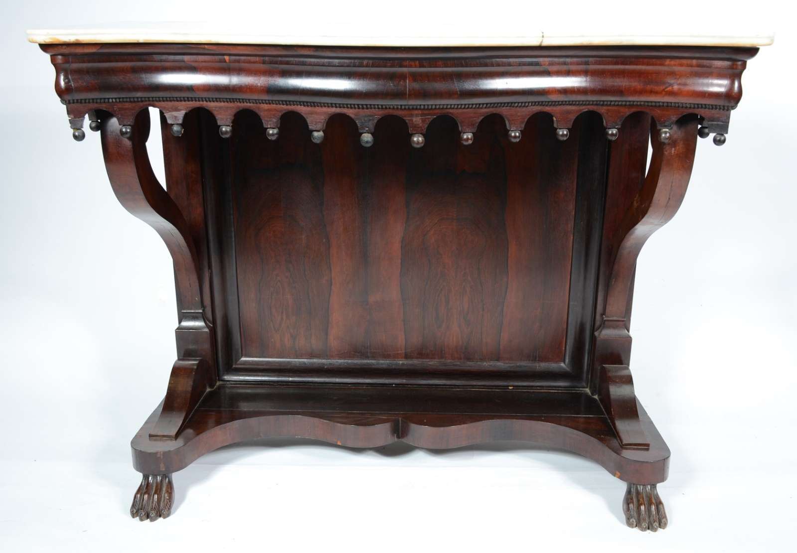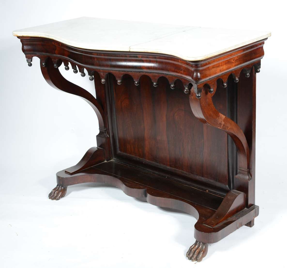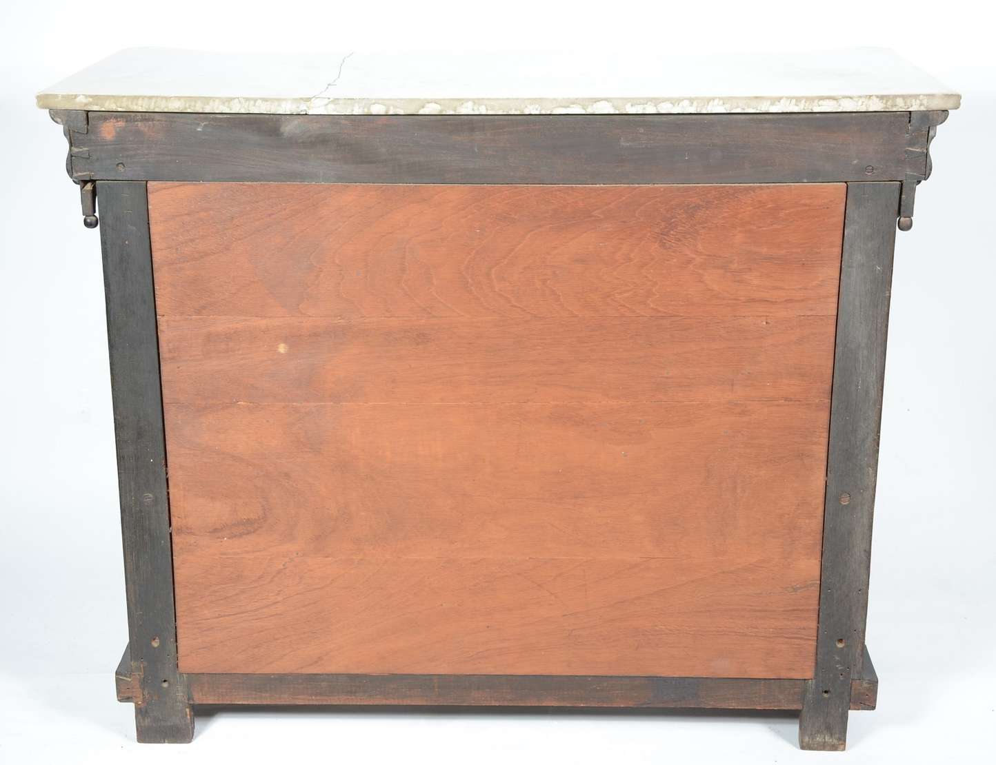 Pequena mesa auxiliar de madeira nobre, tampo de mármore. Faltando a gaveta.