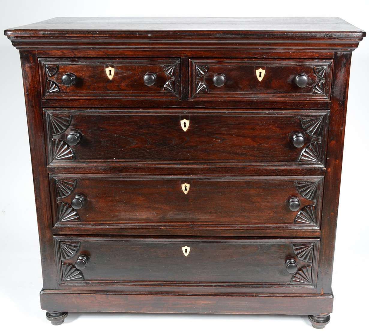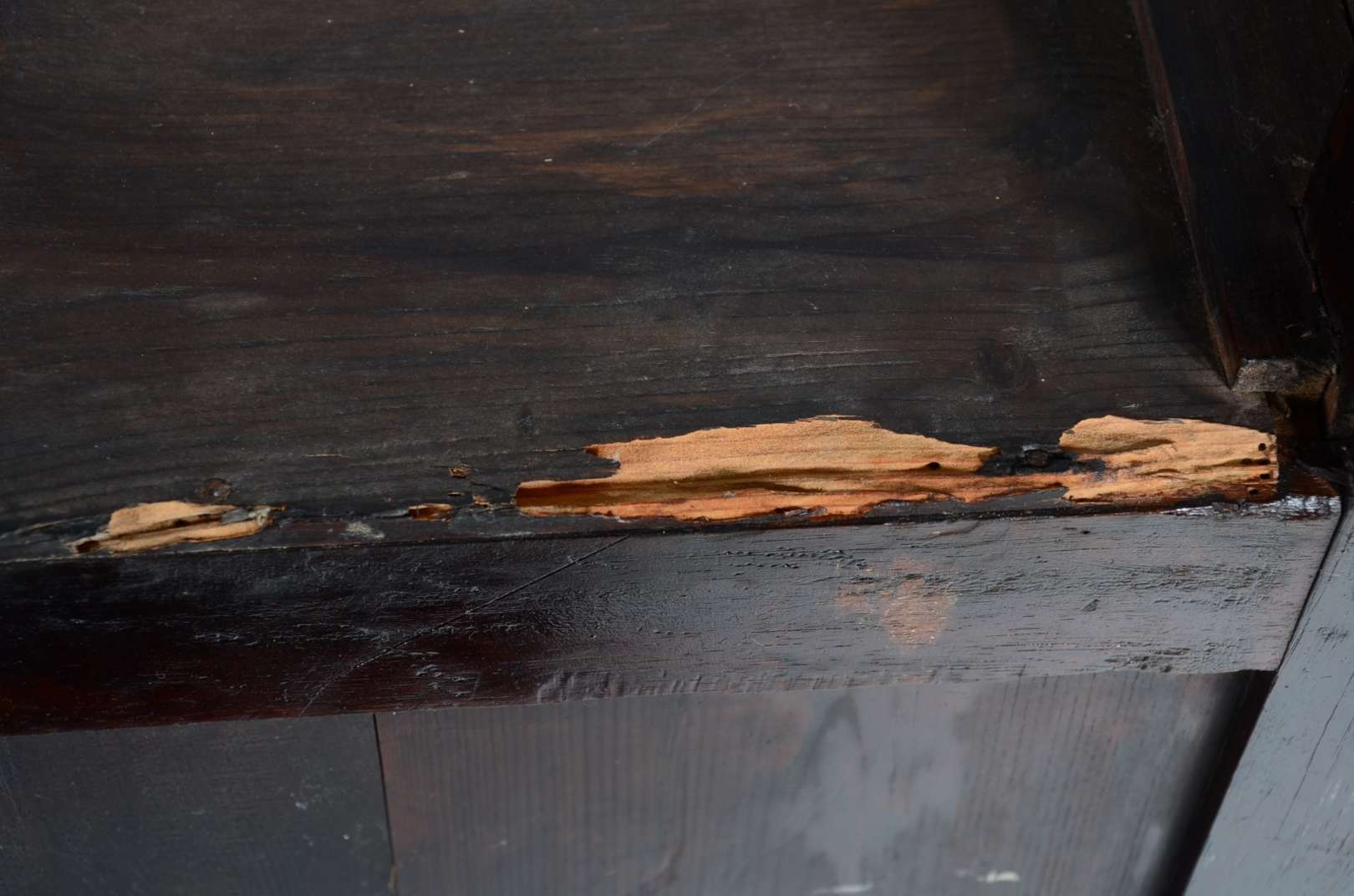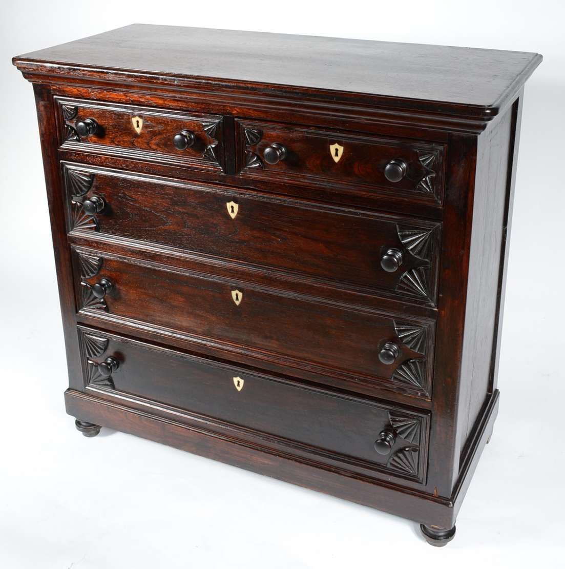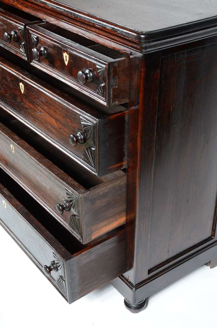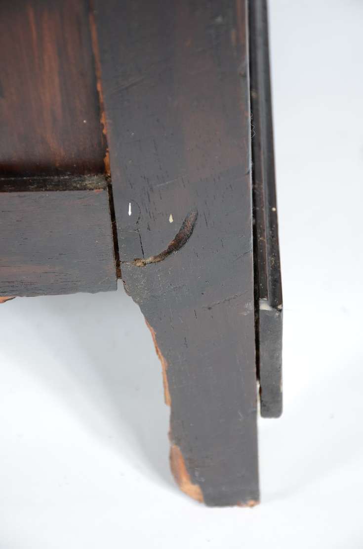 Porta jóias na forma de móvel cômoda miniatura de madeira nobre. Parte inferior com pedaço colado. Pés de bolacha.