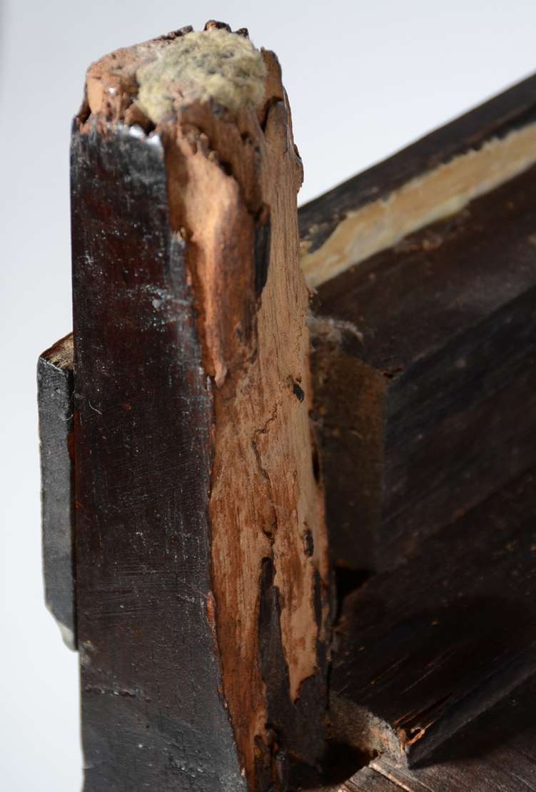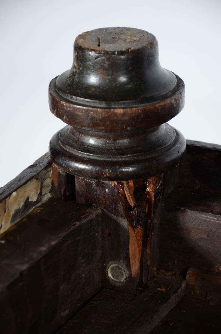 Dunquerque de madeira nobre com duas portas almofadadas e acabamentos de metal em forma de "X". Saias recortadas e pr...