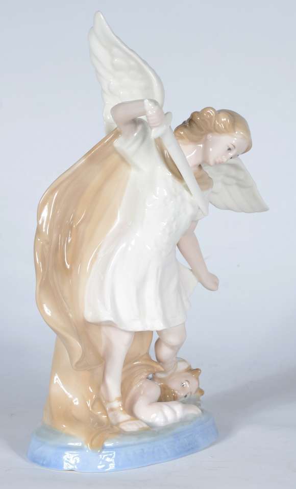 Excepcional figura de anjo de madeira entalhada e policromada. Século XIX.(Foi capa do convite da casa de Leilões it...
