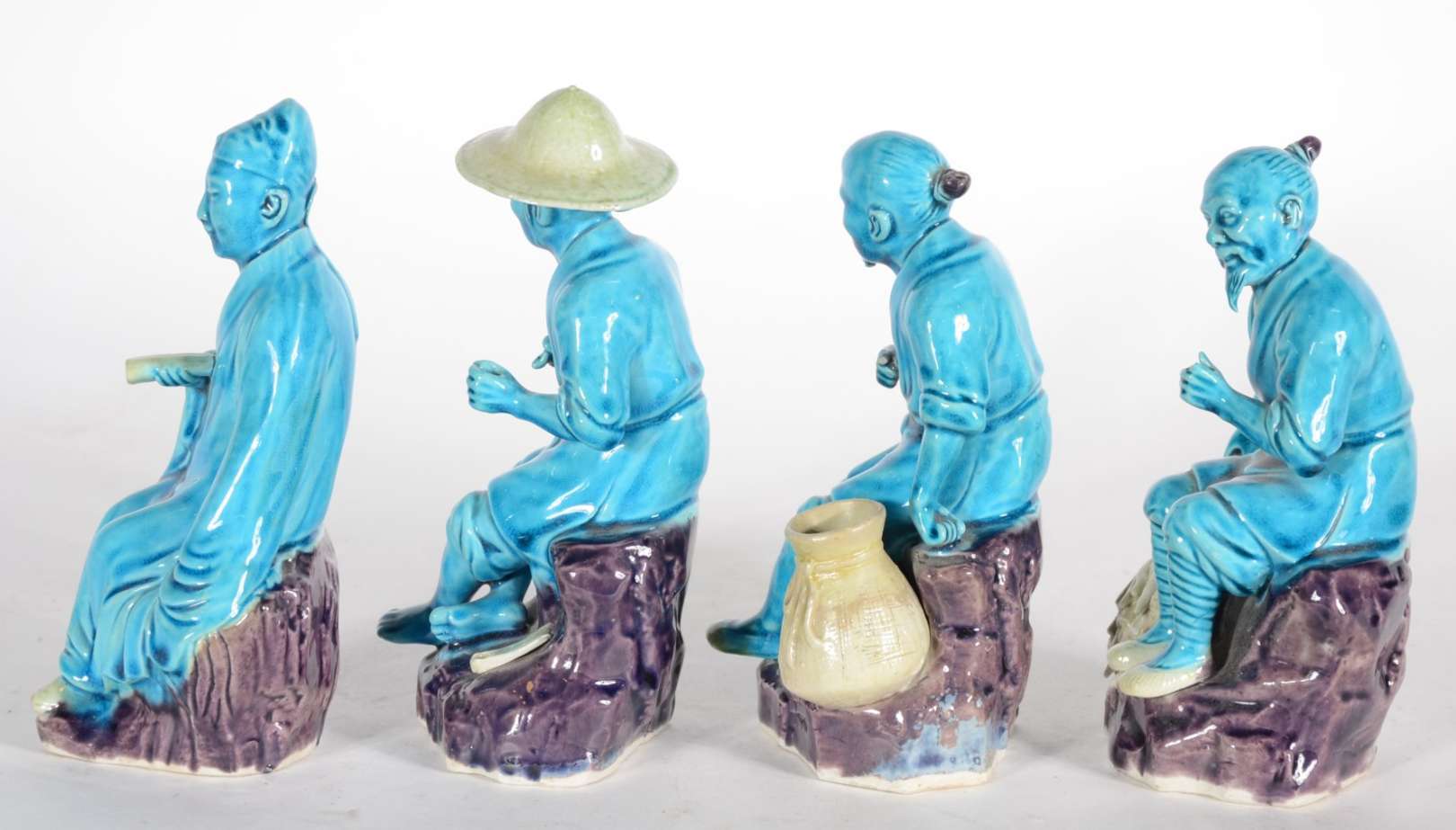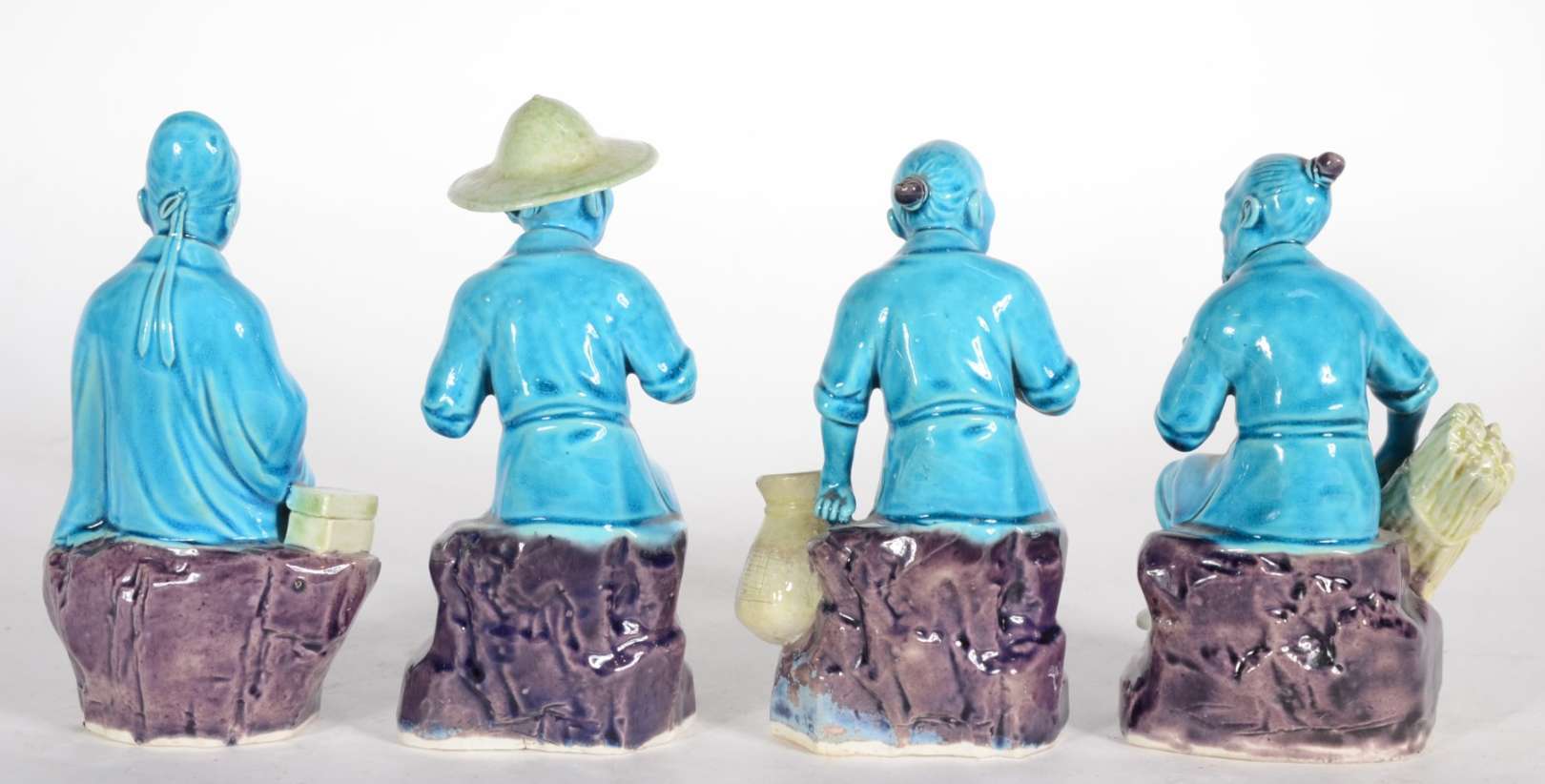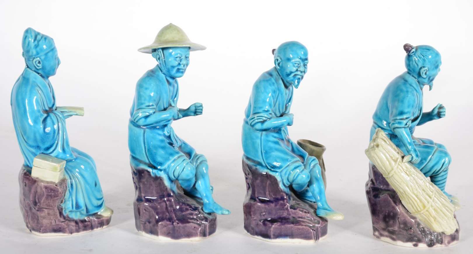 Estatueta de marfim com policromia representando duas figuras, uma delas com cajado.