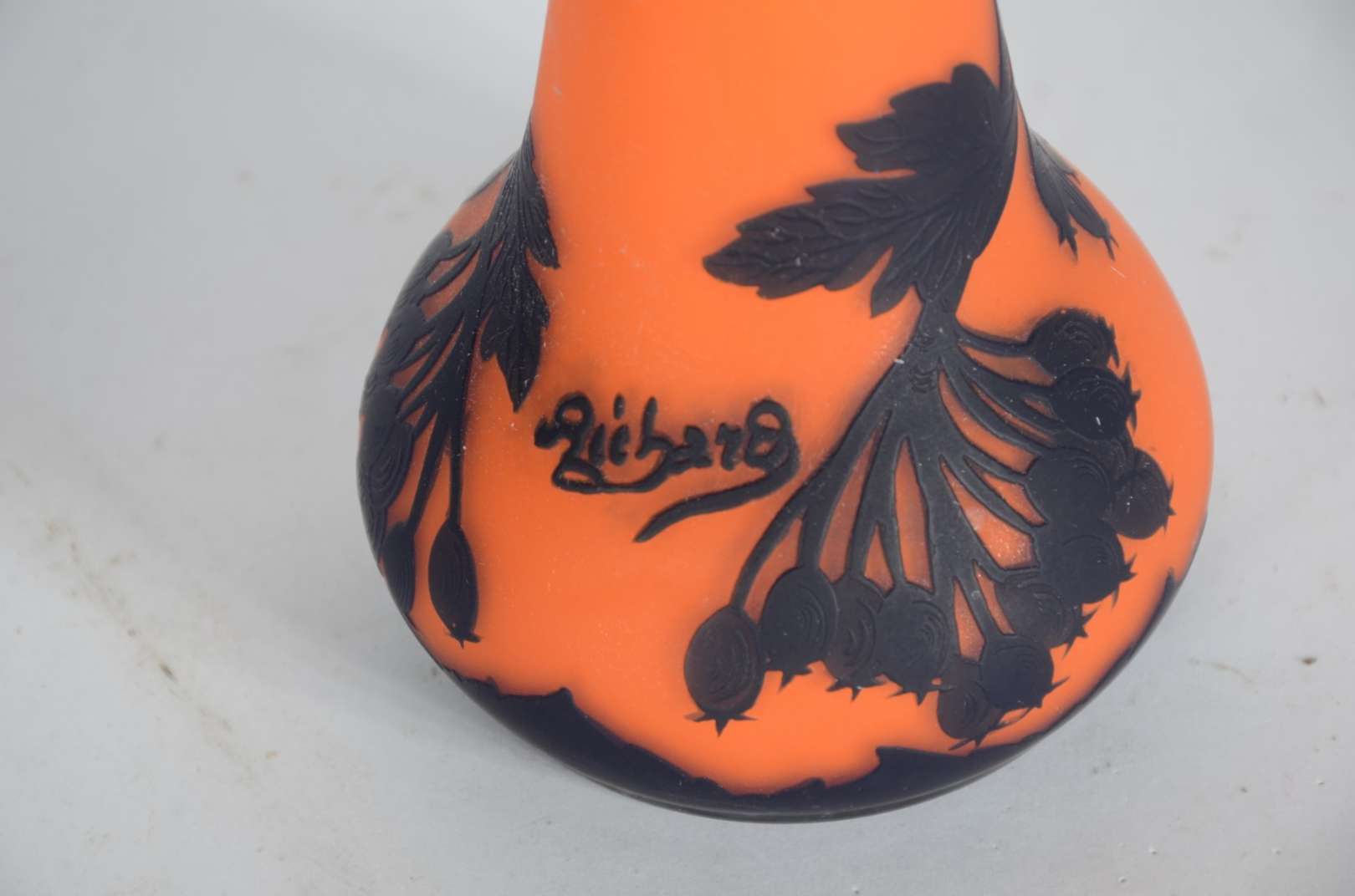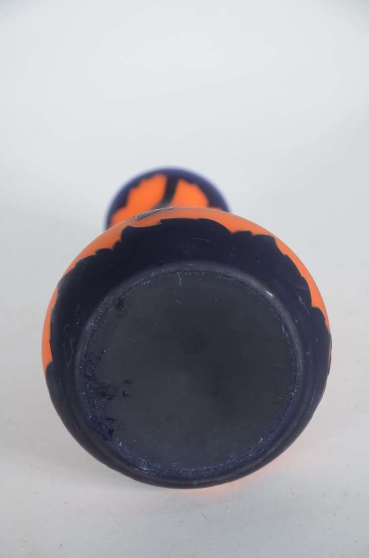Garrafa de vidro decorativo na cor laranja com pó de ouro.