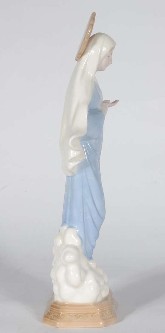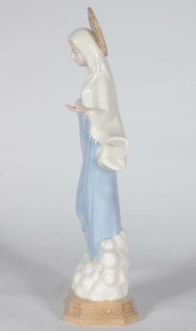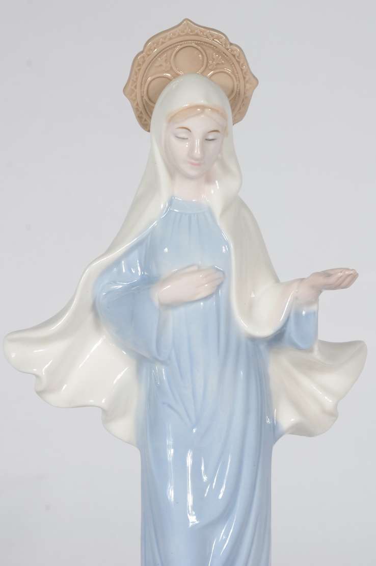 Escultura de porcelana policromada representando Virgem Maria.