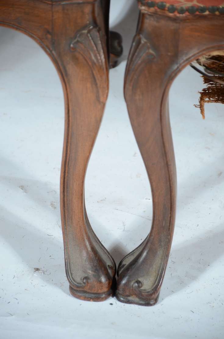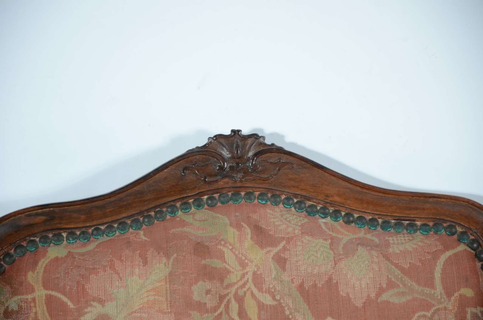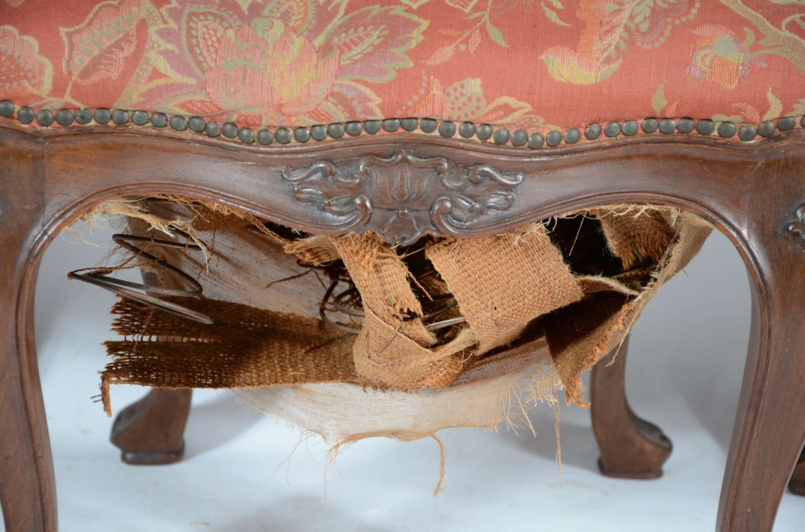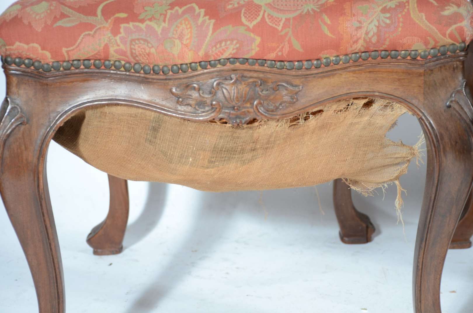 Par de poltronas de madeira patinada, estilo Luis XV, estofadas e forradas com tecido floral.