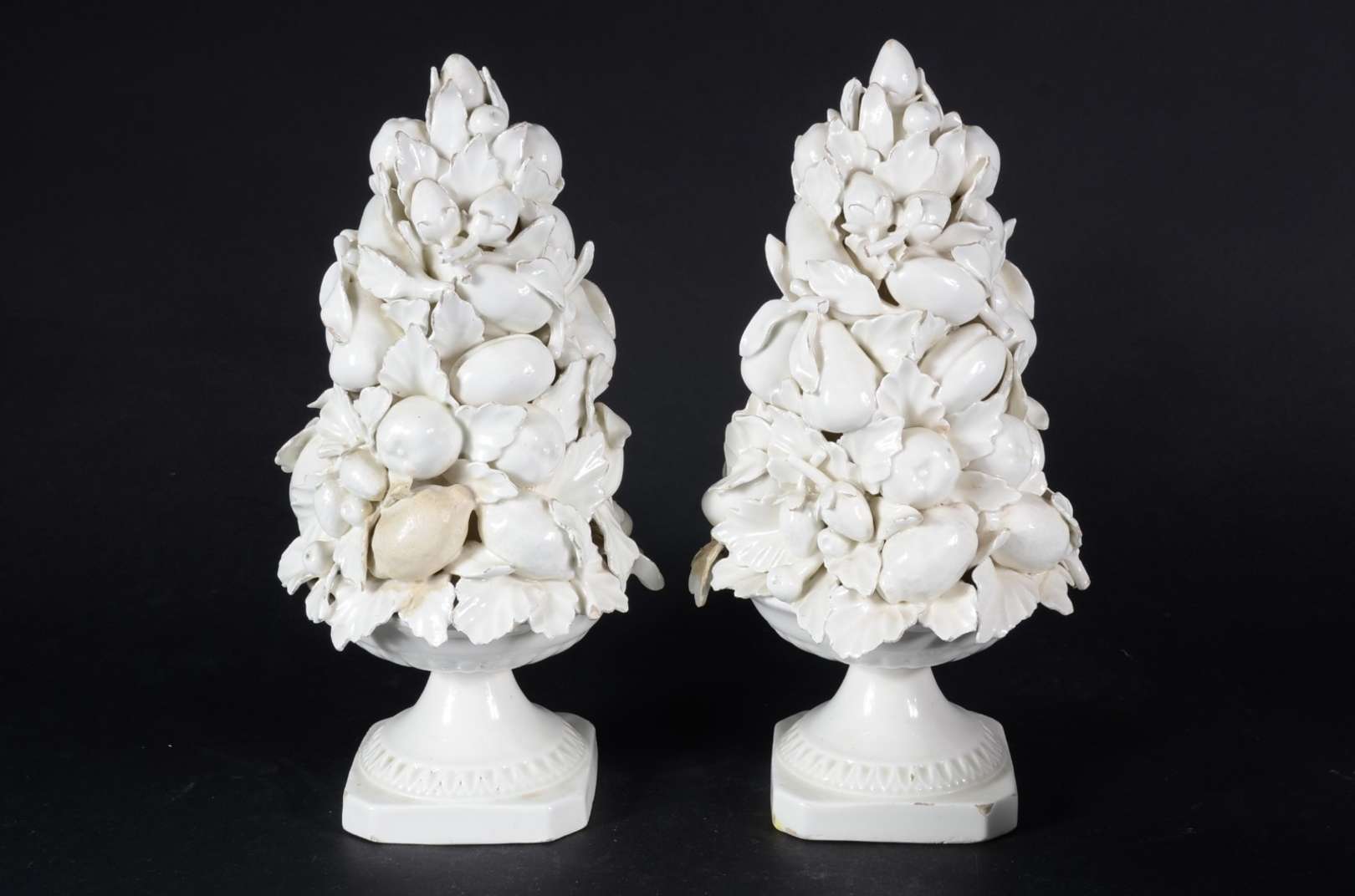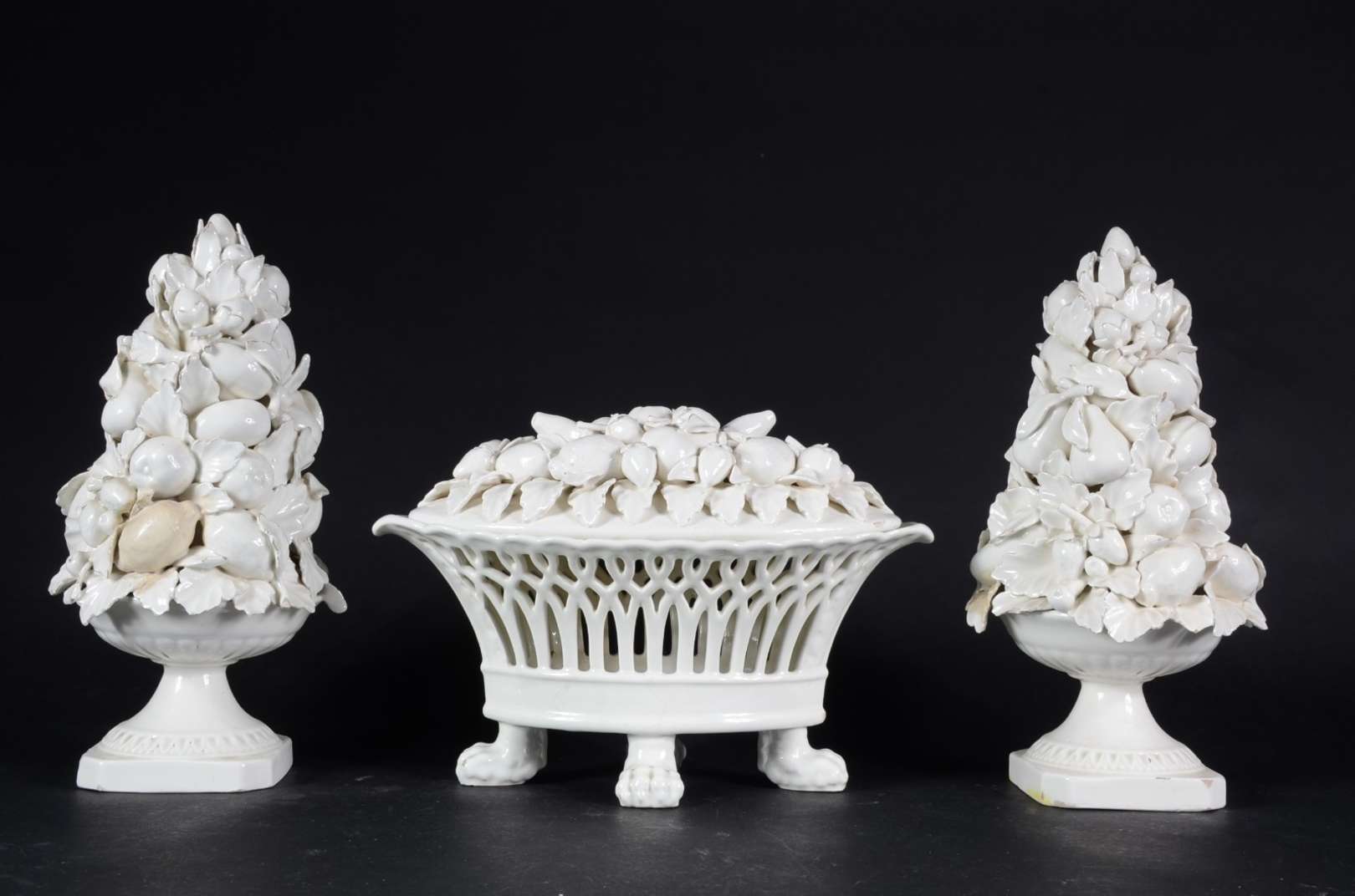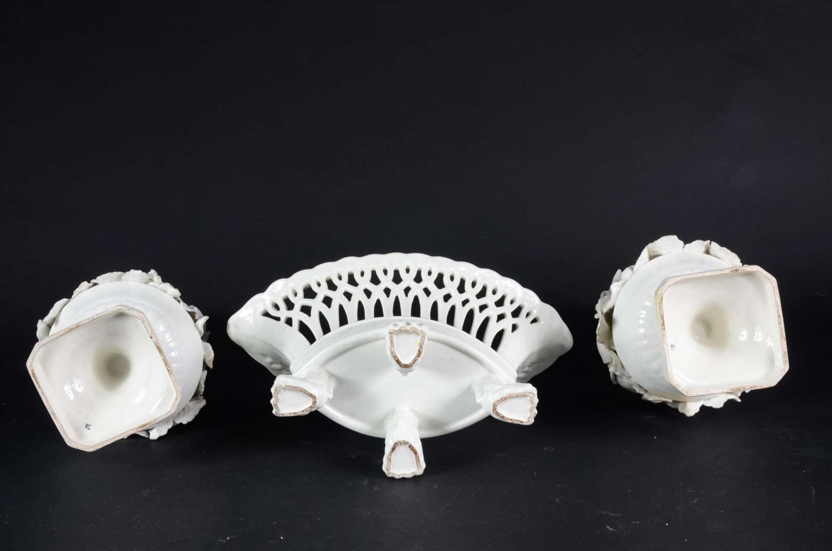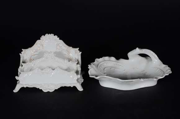 Duas peças de porcelana KPM branca, sendo um porta cartões e um porta petiscos, resquícios de realces dourados.