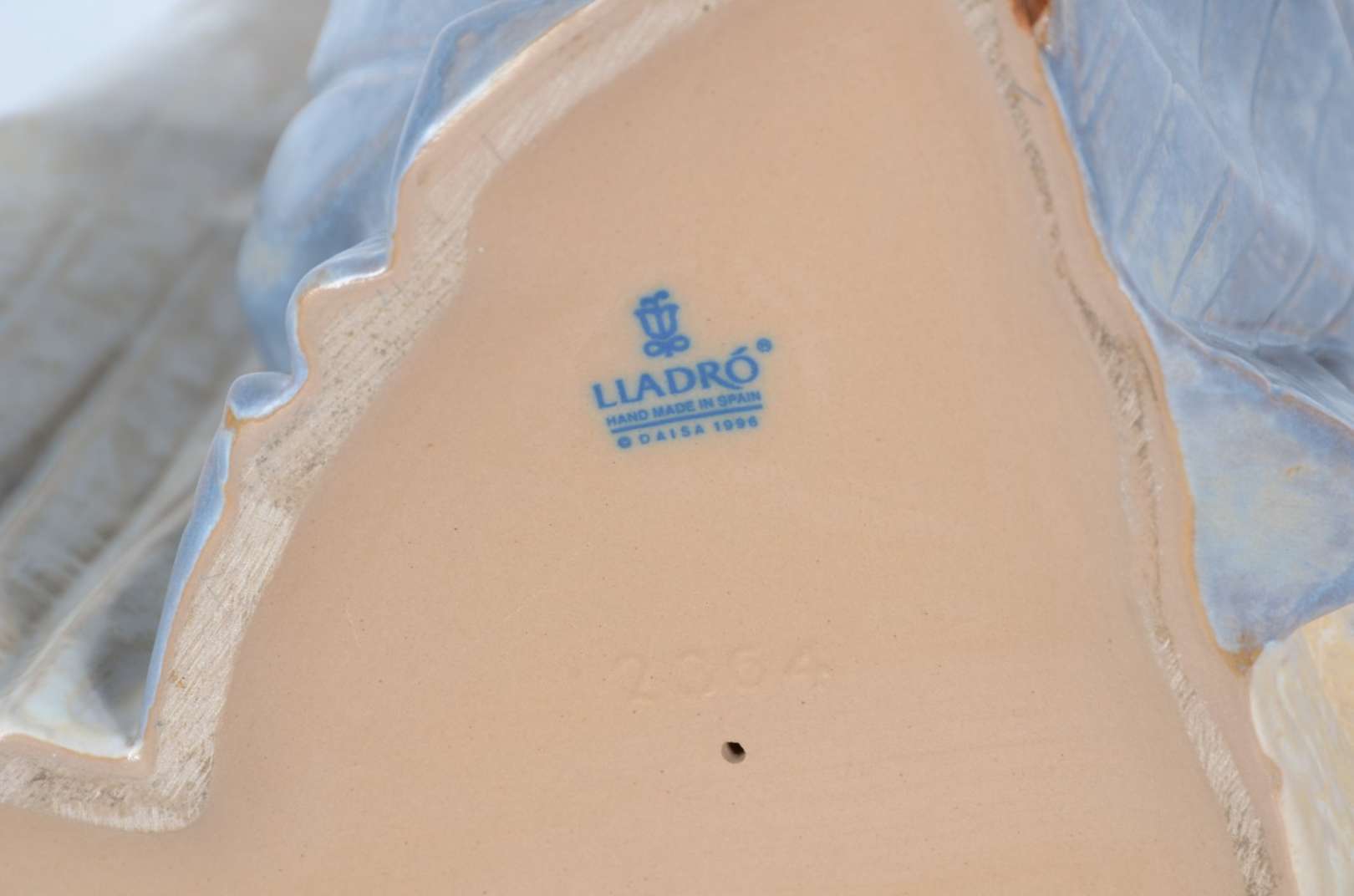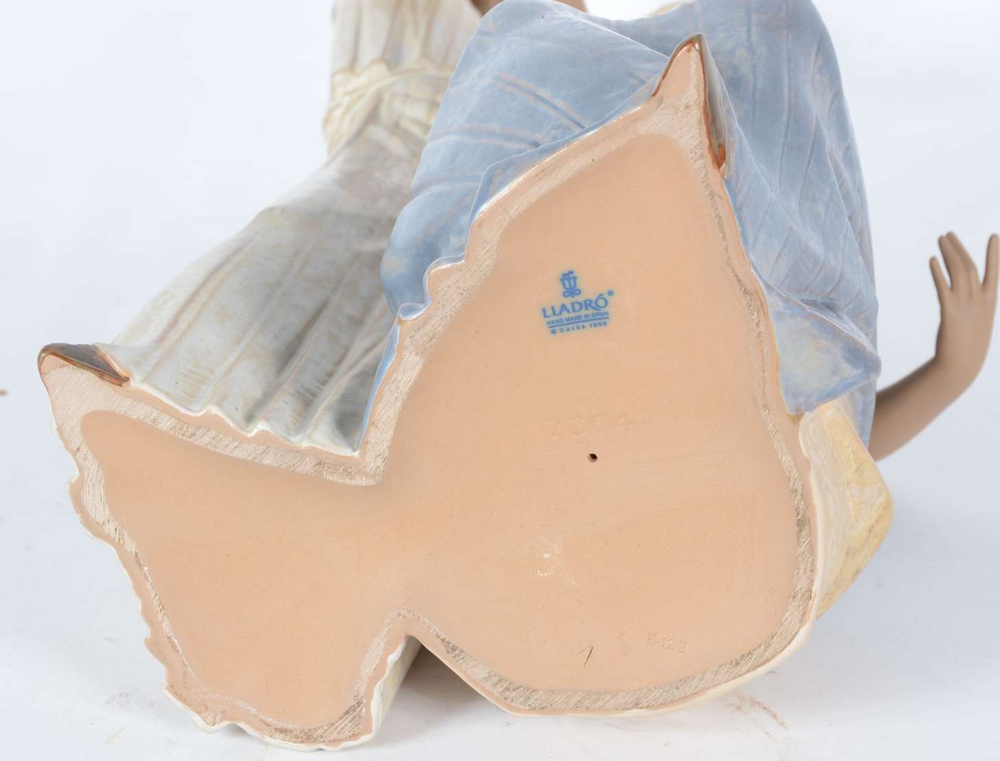 Três esculturas de porcelana policromada representando Virgem Maria.