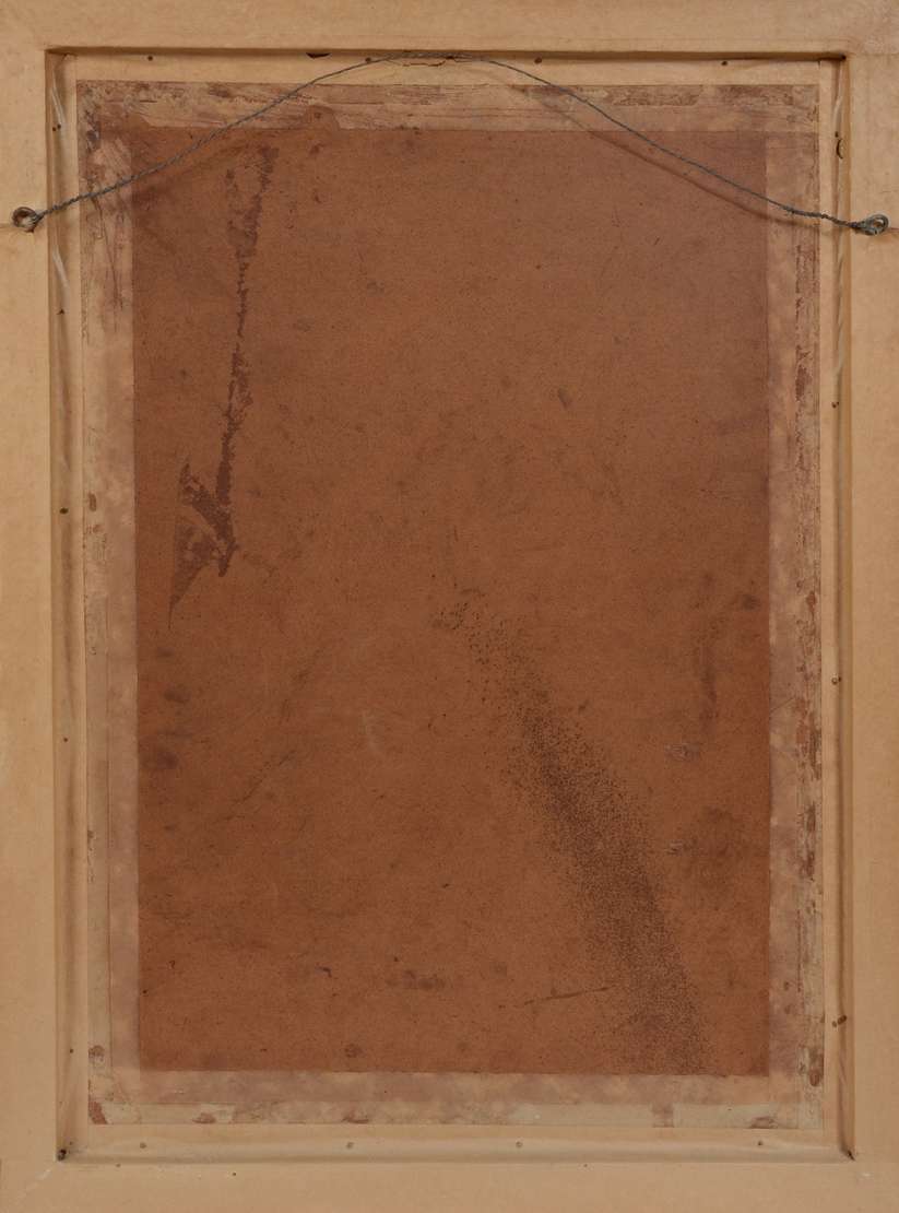 Estampa decorativa representando onça. Pequenos pontos de fungo.