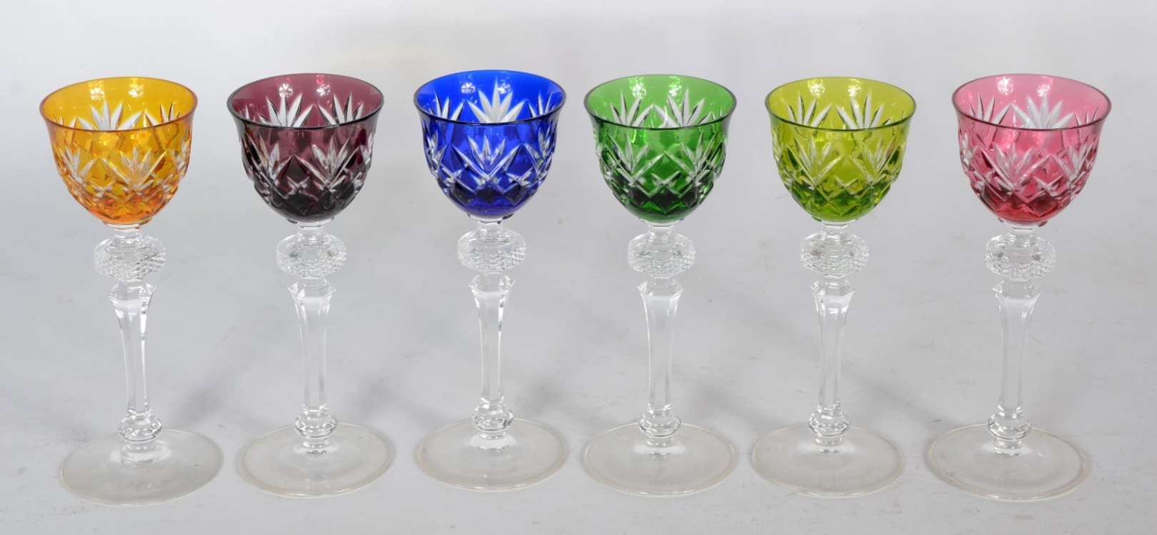 Licoreira de cristal doublé rubi lapidada, marcada na base.