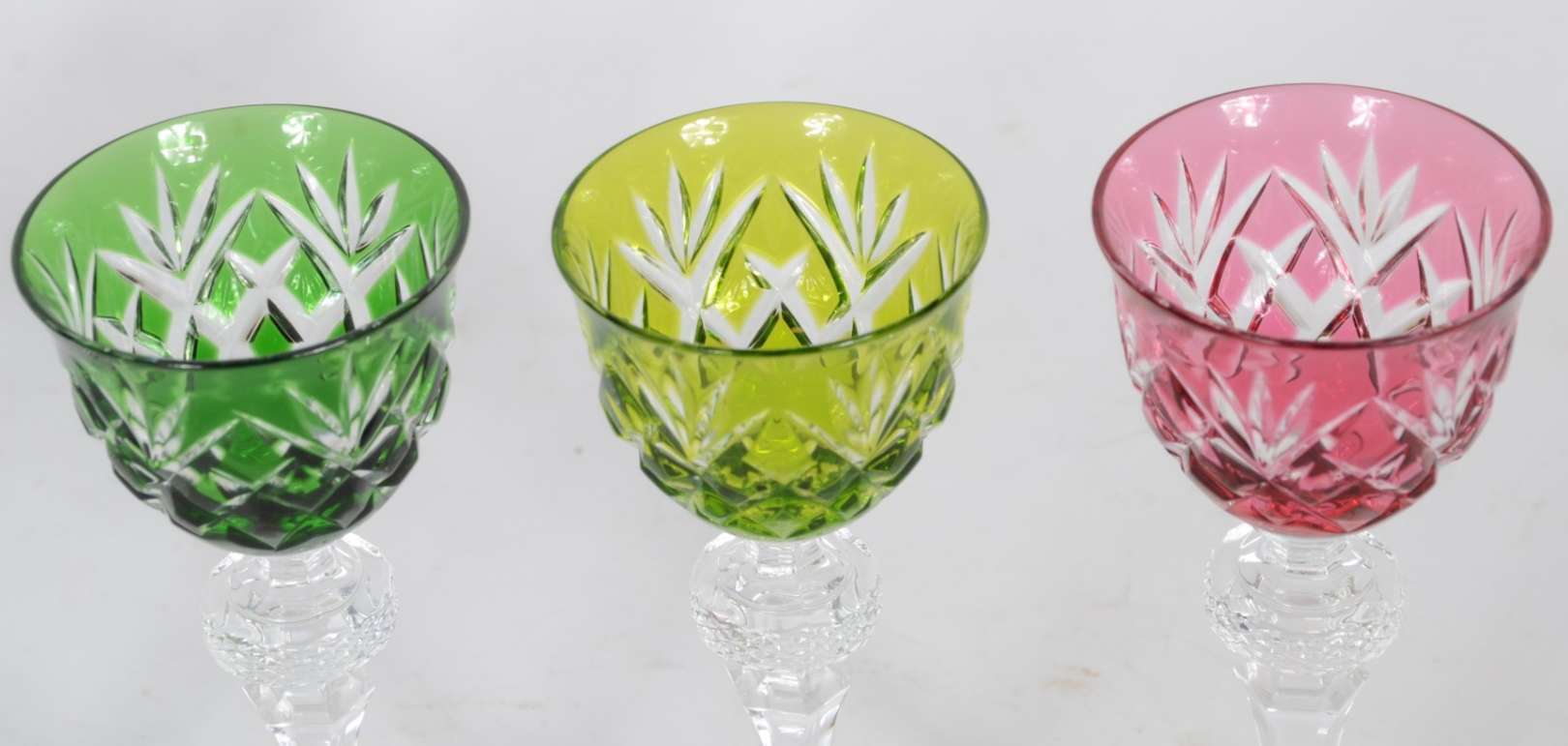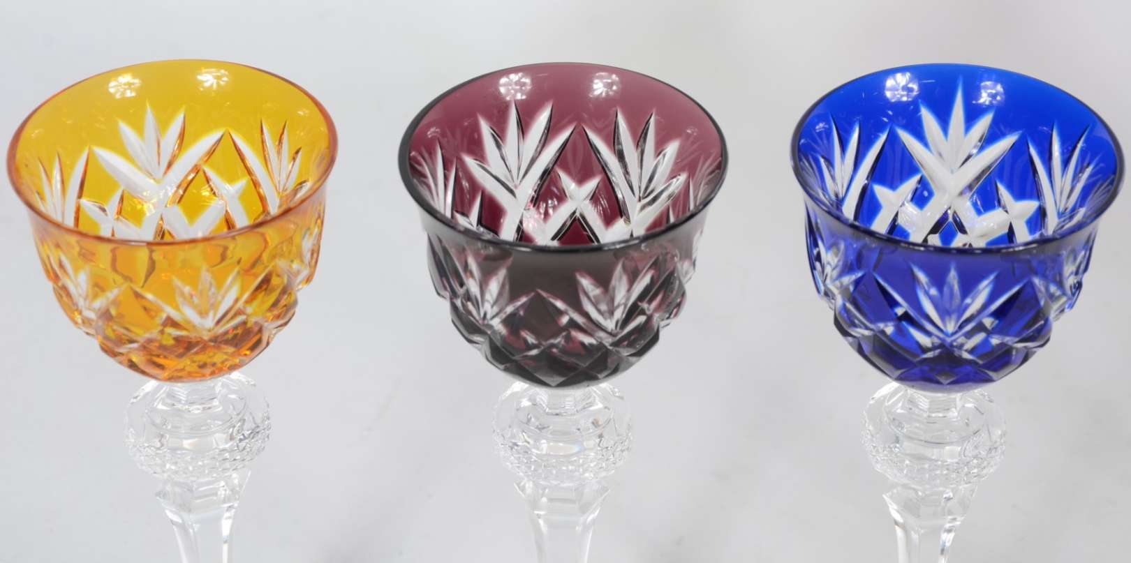 Conjunto de cristal tcheco lapidado, composto de: dois pratos grandes para sobremesa (um deles doublé âmbar) e 6 prat...
