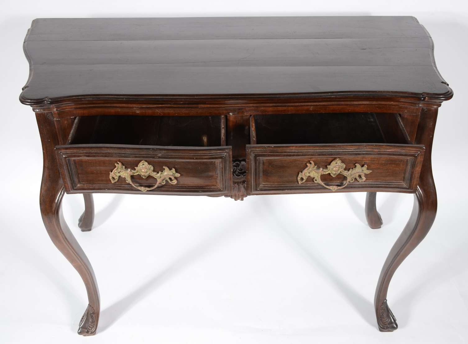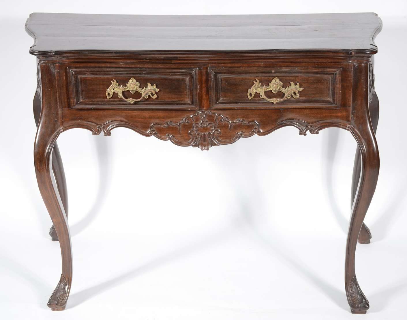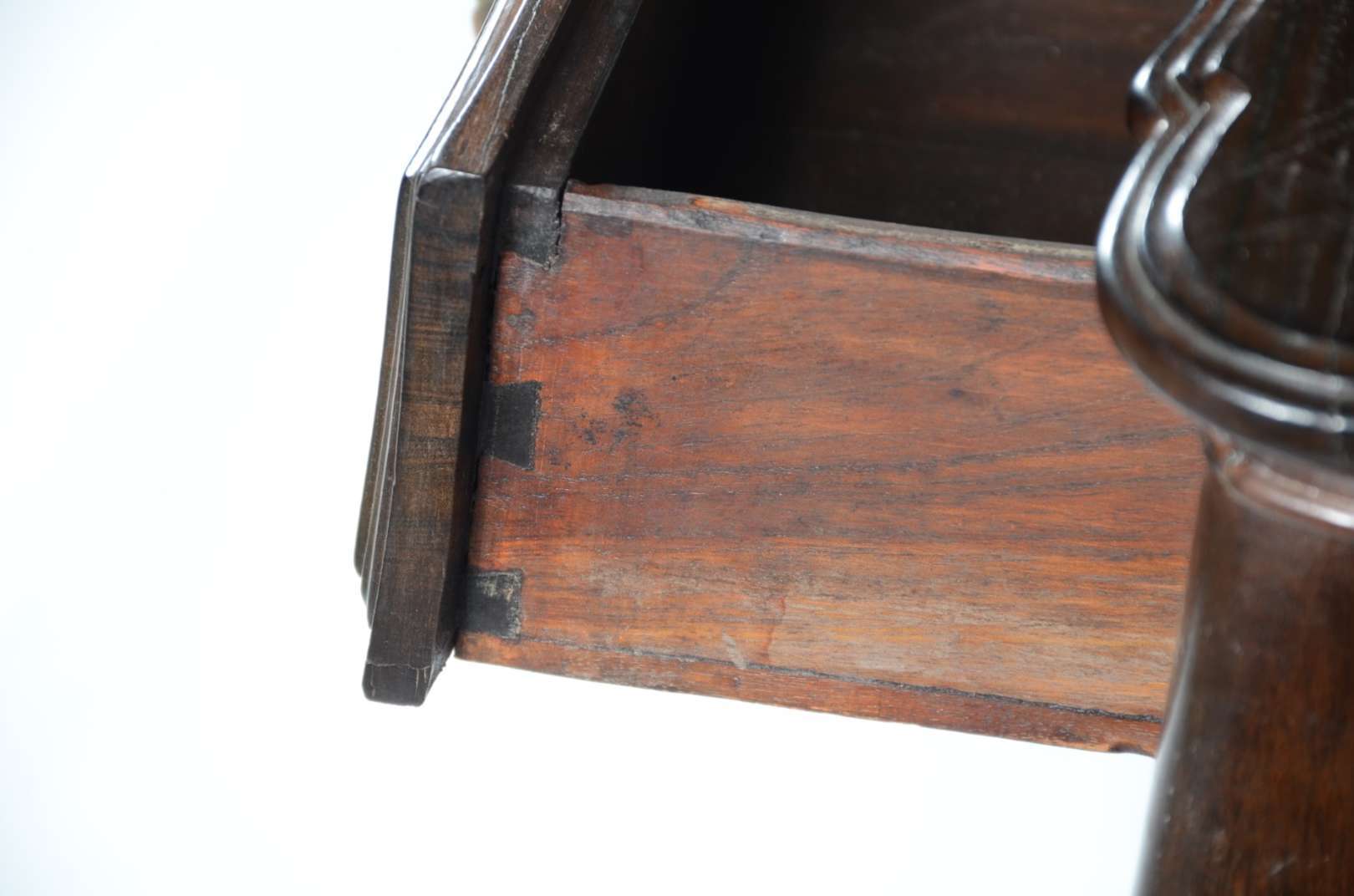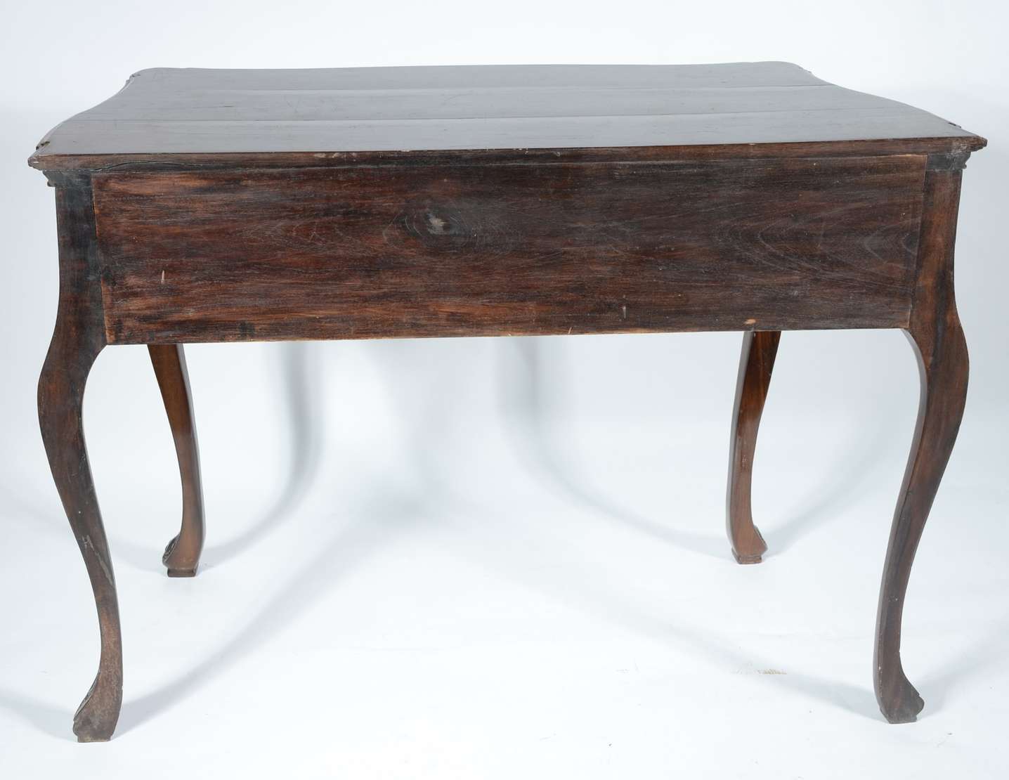"Bonheur du jour" de madeira nobre, feitio bombé, trabalhos em parqueterie no estilo francês, corpo com uma gaveta e...