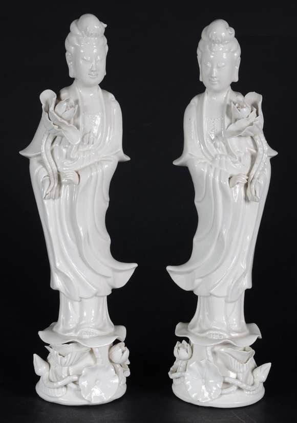 Par de estatuetas de porcelana "Blanc de Chine" representando Guan Yin.