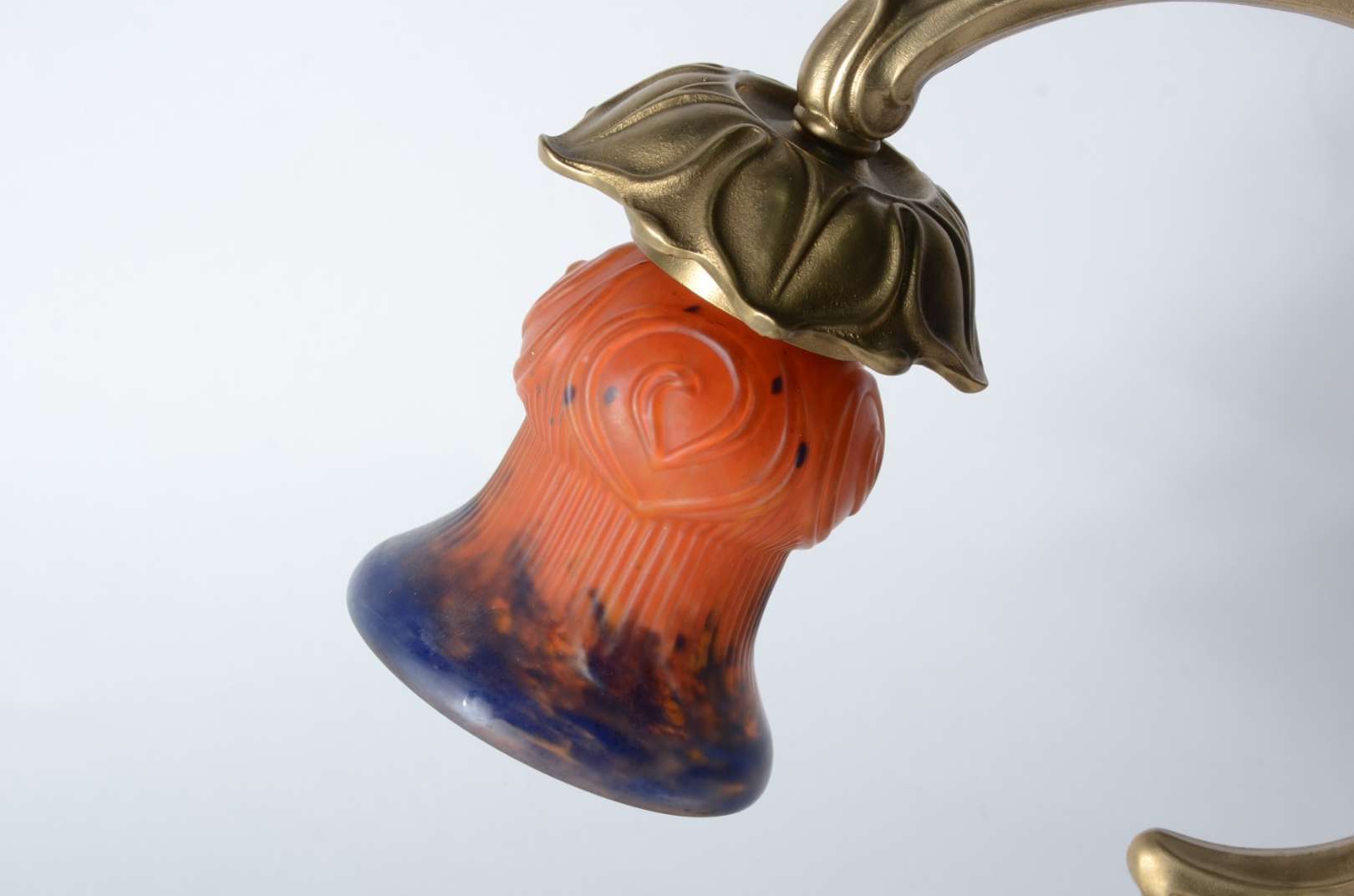 Par de luminárias de bronze, possivelmente francesas, para 6 luzes cada, pingentes de cristal lapidado e mangas de p...