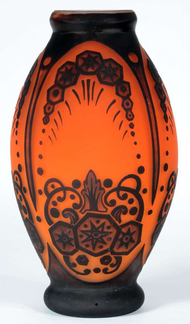 Vaso de pasta de vidro francesa, Muller Fres. Borda com pequeno lascado.