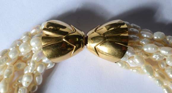 Colar de perolas "negras", fecho de ouro 18 k. (Por motivos de segurança a peça não se encontra na loja).