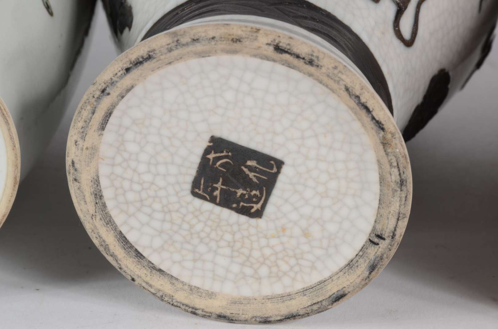 Par de belíssimos vasos de porcelana japonesa Imari, feitio losango, bases de acrílico. Um deles com restauro no bocal.