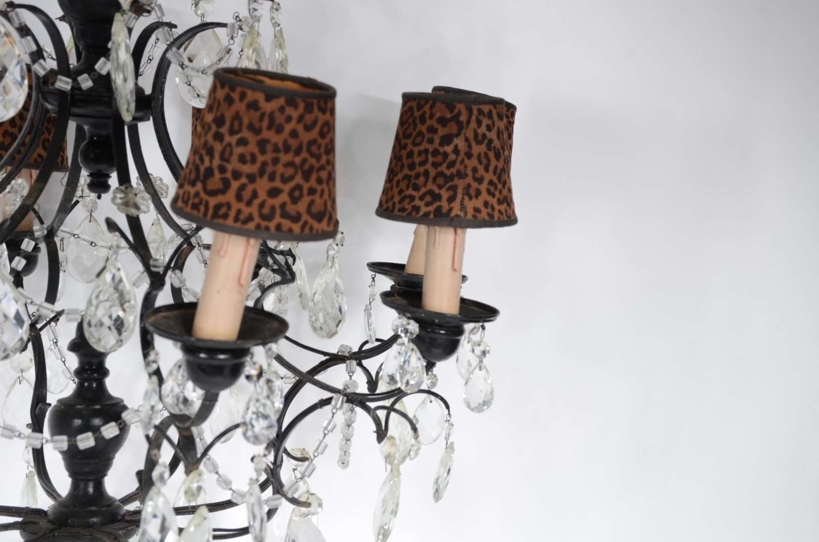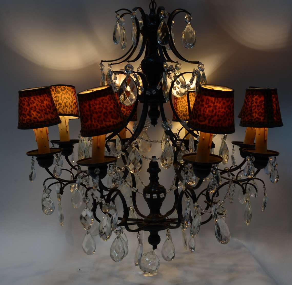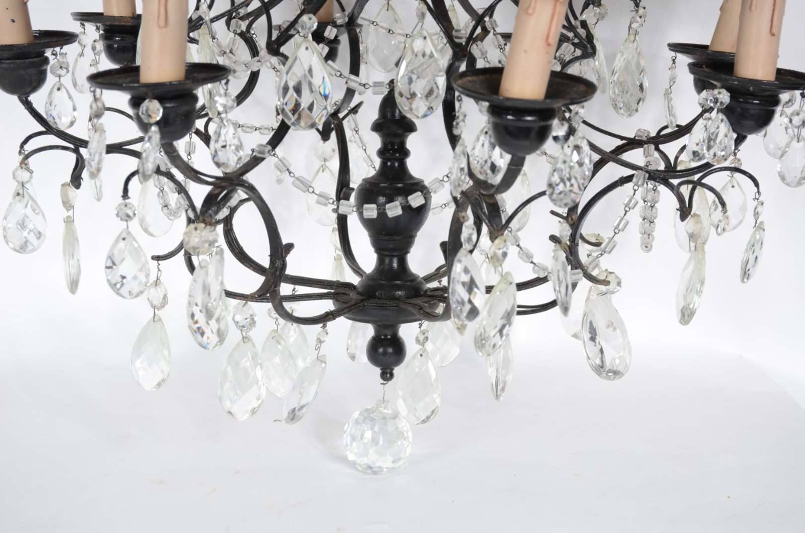 Par de luminárias de bronze, possivelmente francesas, para 6 luzes cada, pingentes de cristal lapidado e mangas de p...