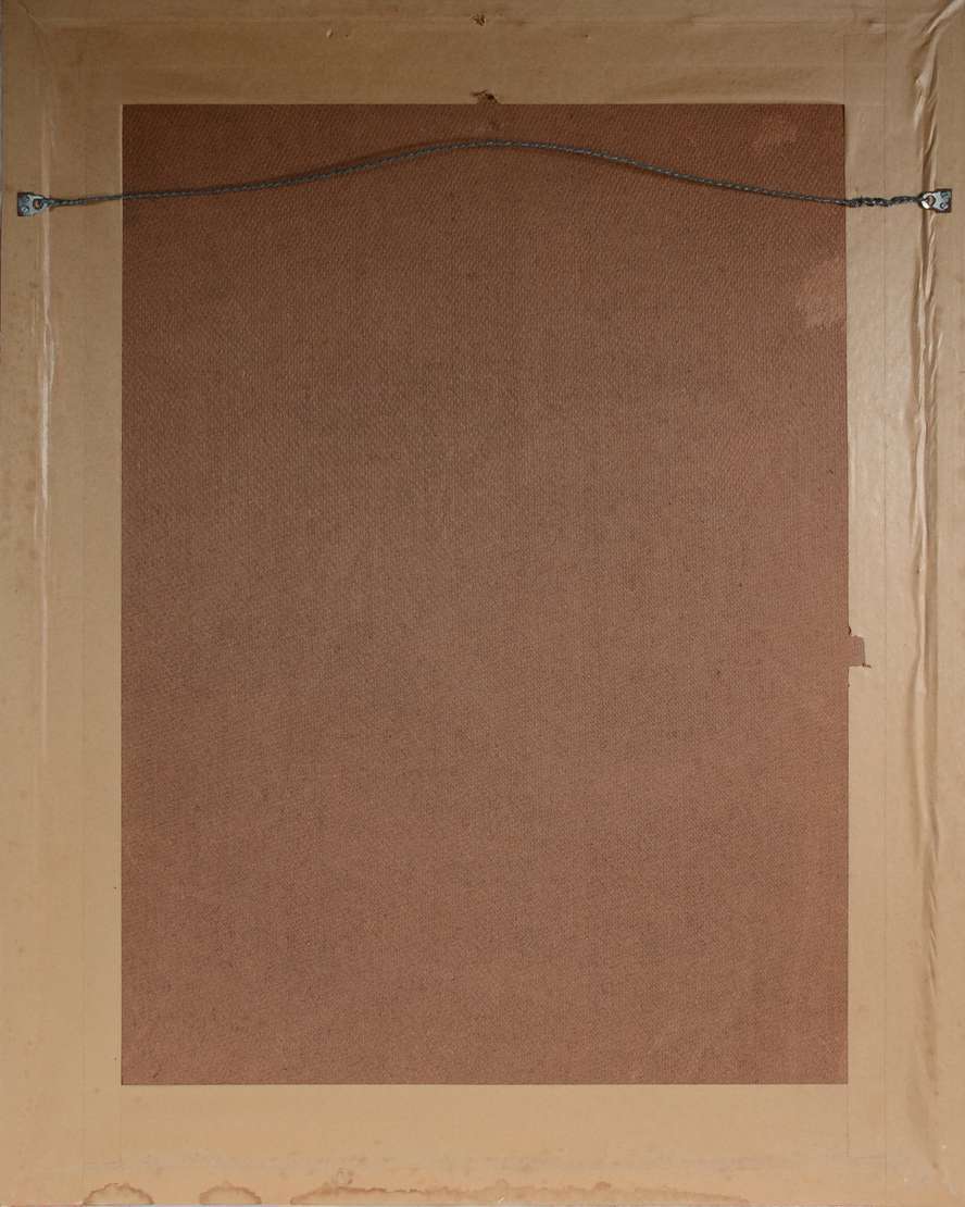 Vinil e colagem encerados sobre tela. Selo da Galeria Contorno (RJ) no verso. Datado e localizado Cabo Frio, 1992.
