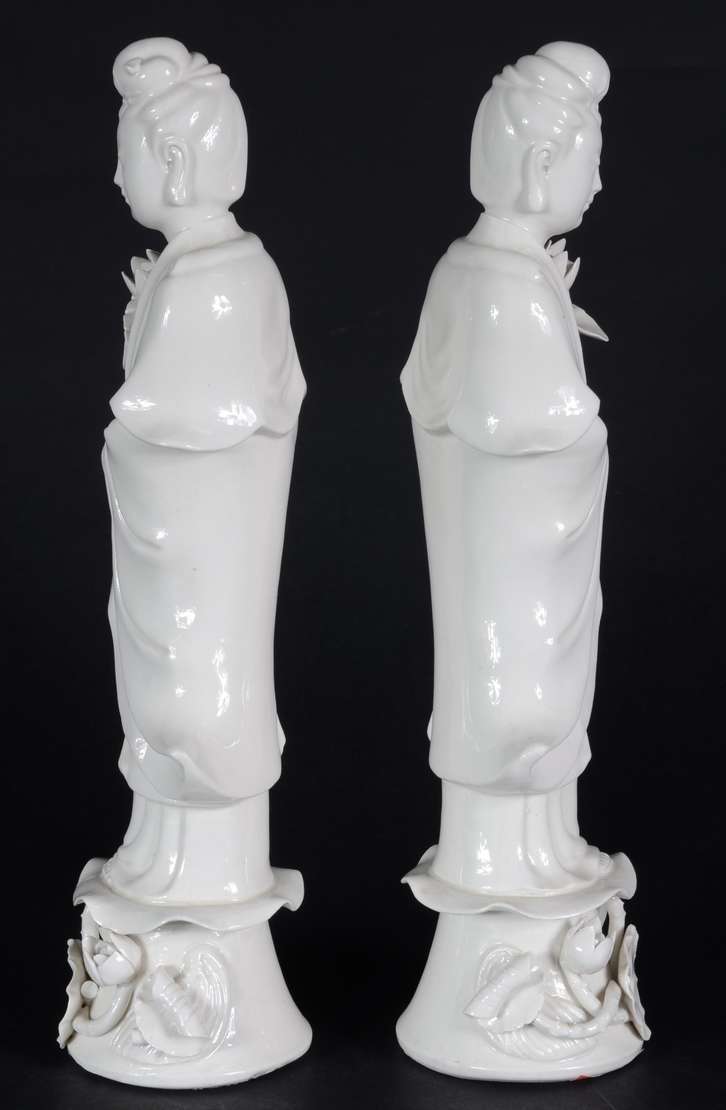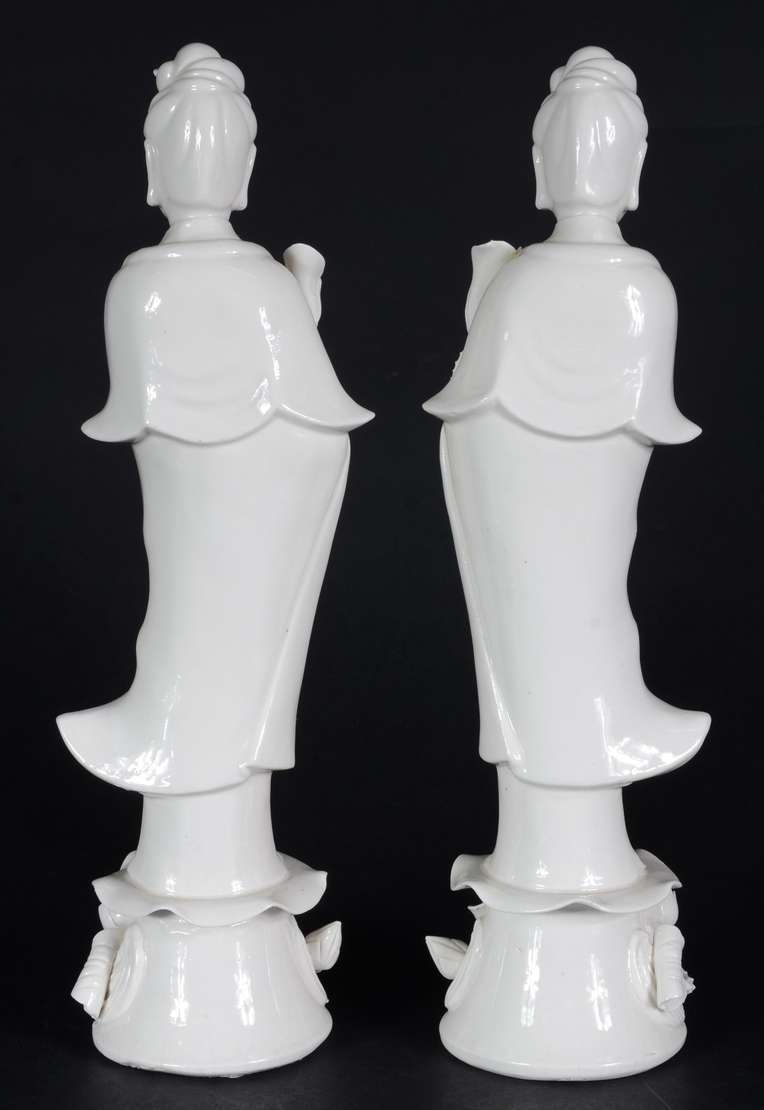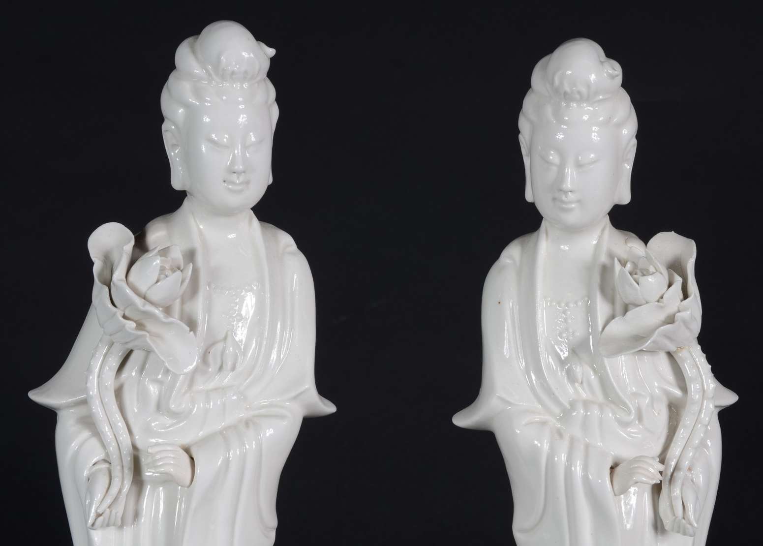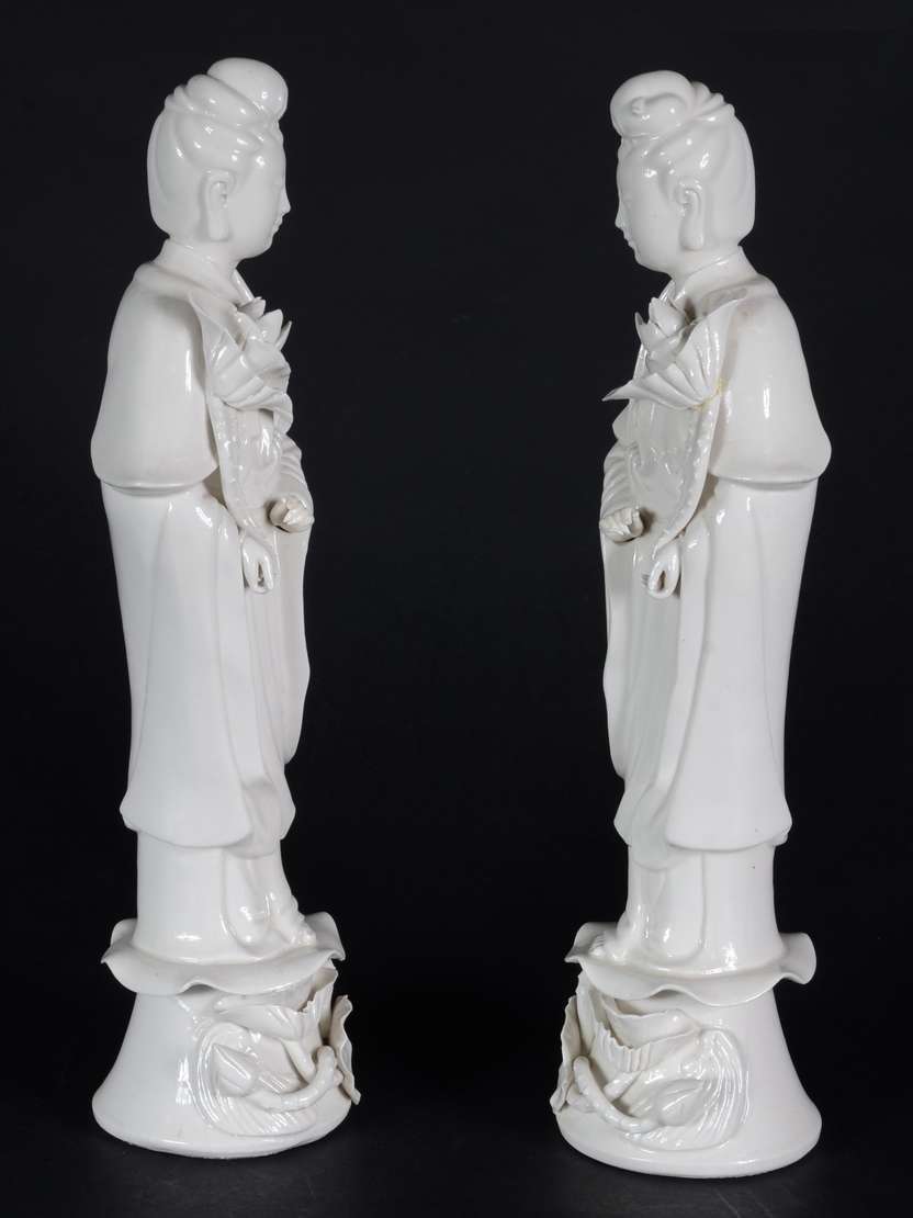 Par de estatuetas de porcelana "Blanc de Chine" representando Guan Yin.