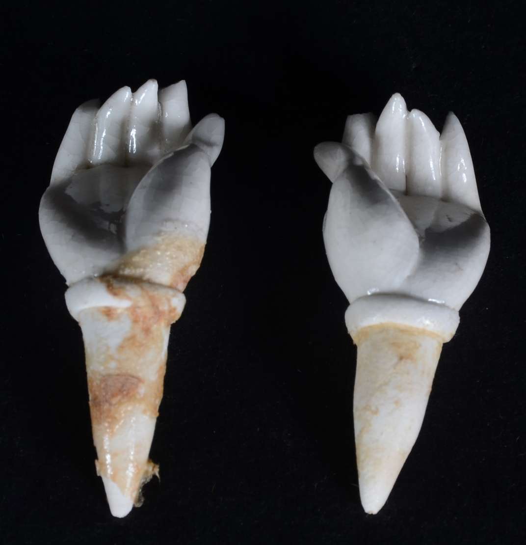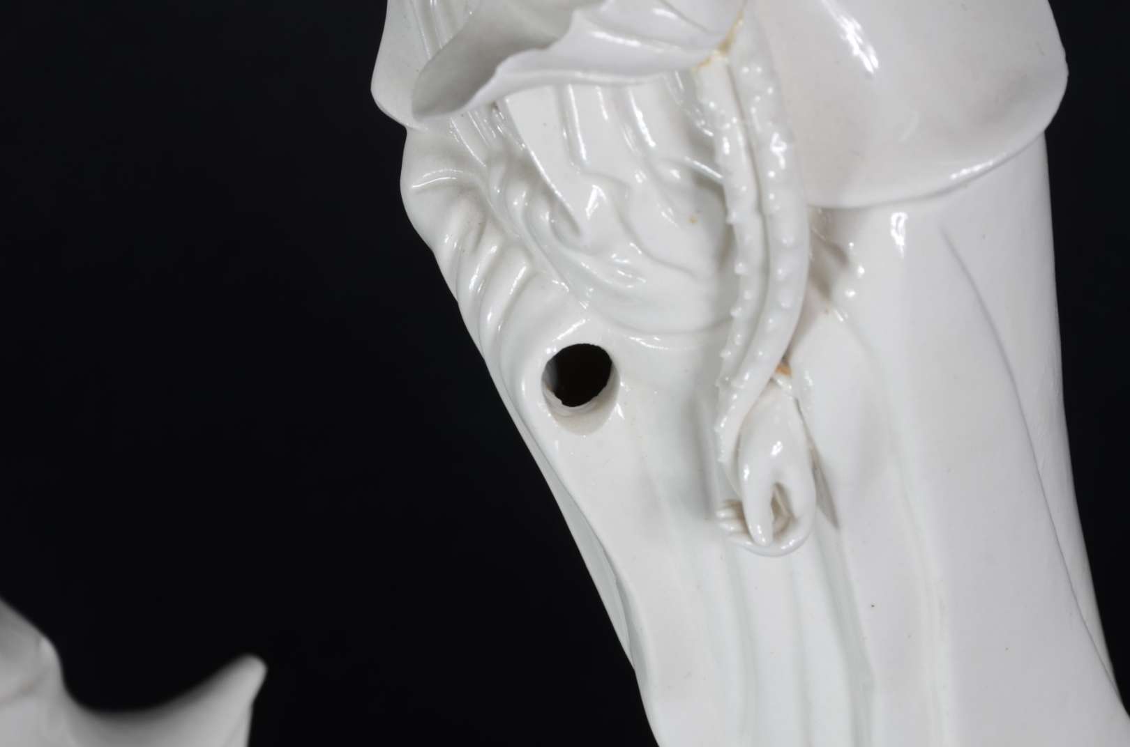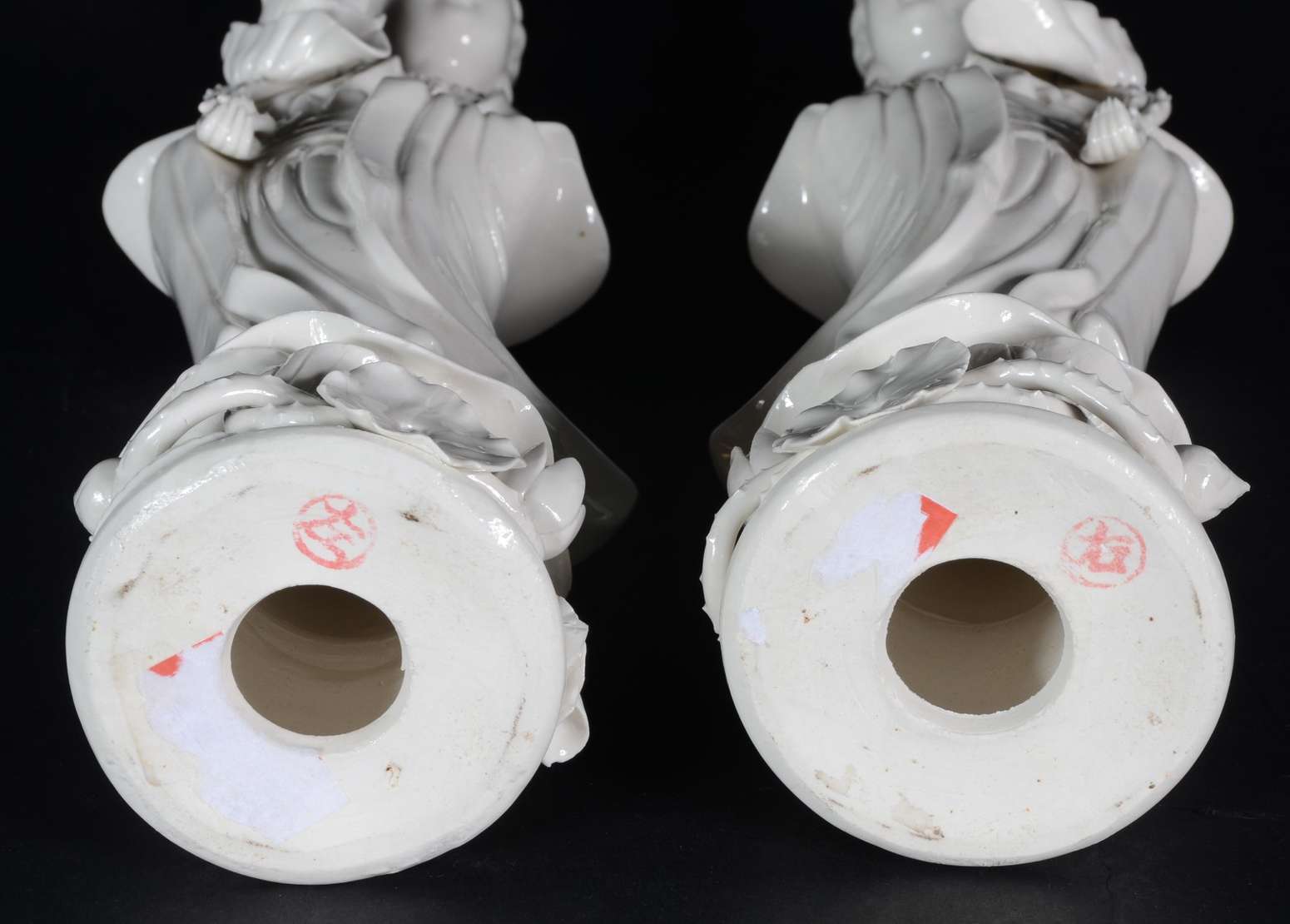 Par de estatuetas de porcelana "Blanc de Chine" representando Guan Yin.