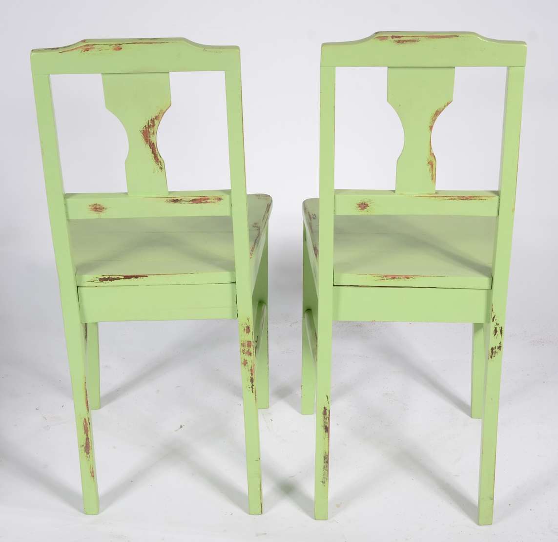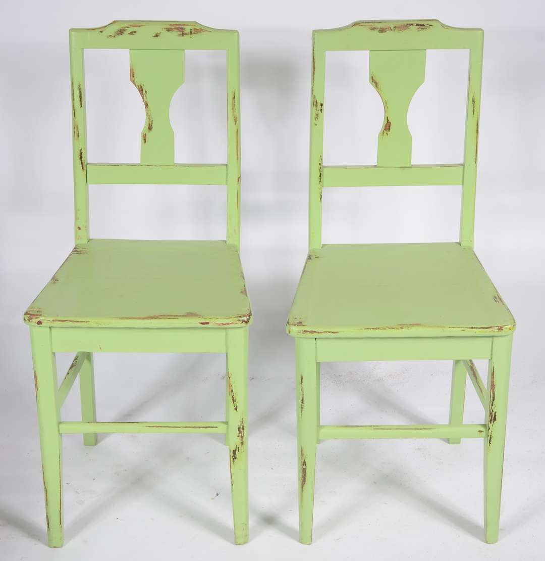 Cadeira com braços de madeira patinada, estilo Luis XV, estofamento forrado com tecido na cor verde.