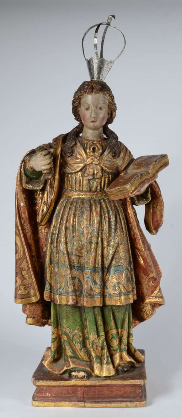 Santa Quitéria - Excepcional Imagem de madeira policromada e dourada, Portugal. Século XVIII. Escultura em madeira co...